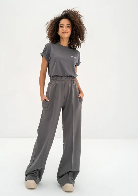 Costa - Spodnie dresowe z szeroką nogawką Gray Rock