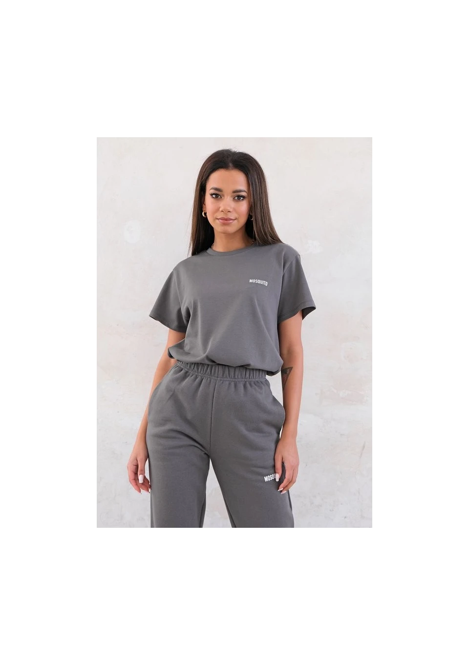 Klasyczny T-shirt damski bawełniany w grafitowym kolorze. Koszulka o wszechstronnym zastosowaniu, z czystym składem.
