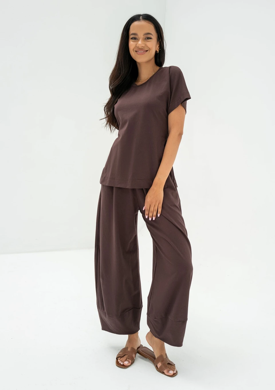 Softie - Rozkloszowane szorty z bawełnianej dzianiny Dark Chocolate