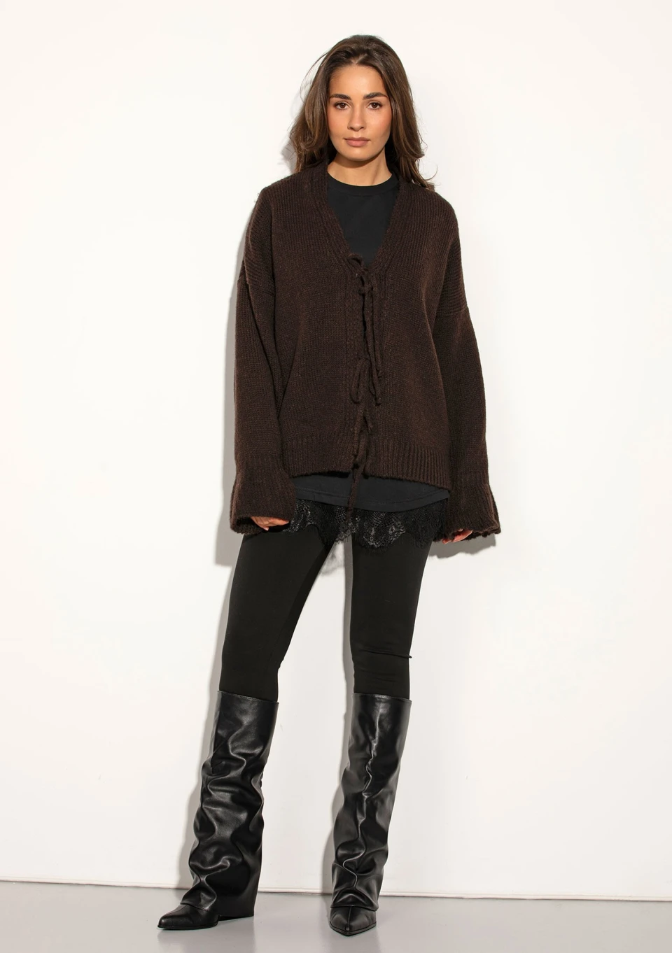Knotty - Kardigan z wiązaniami i szerokim rękawem Brązowy