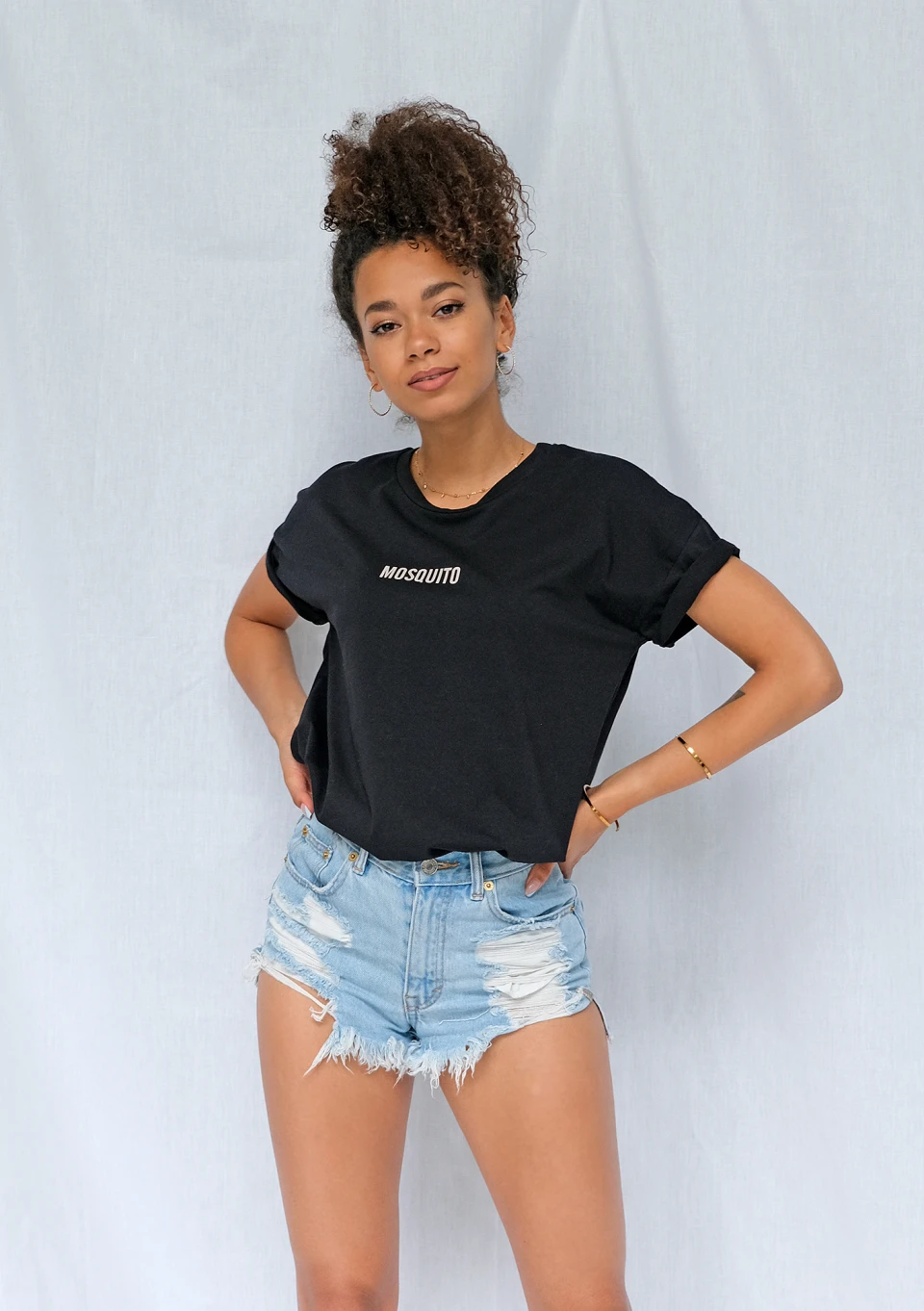 Way - Koszulka crop z logo ,,Roses" Czarna