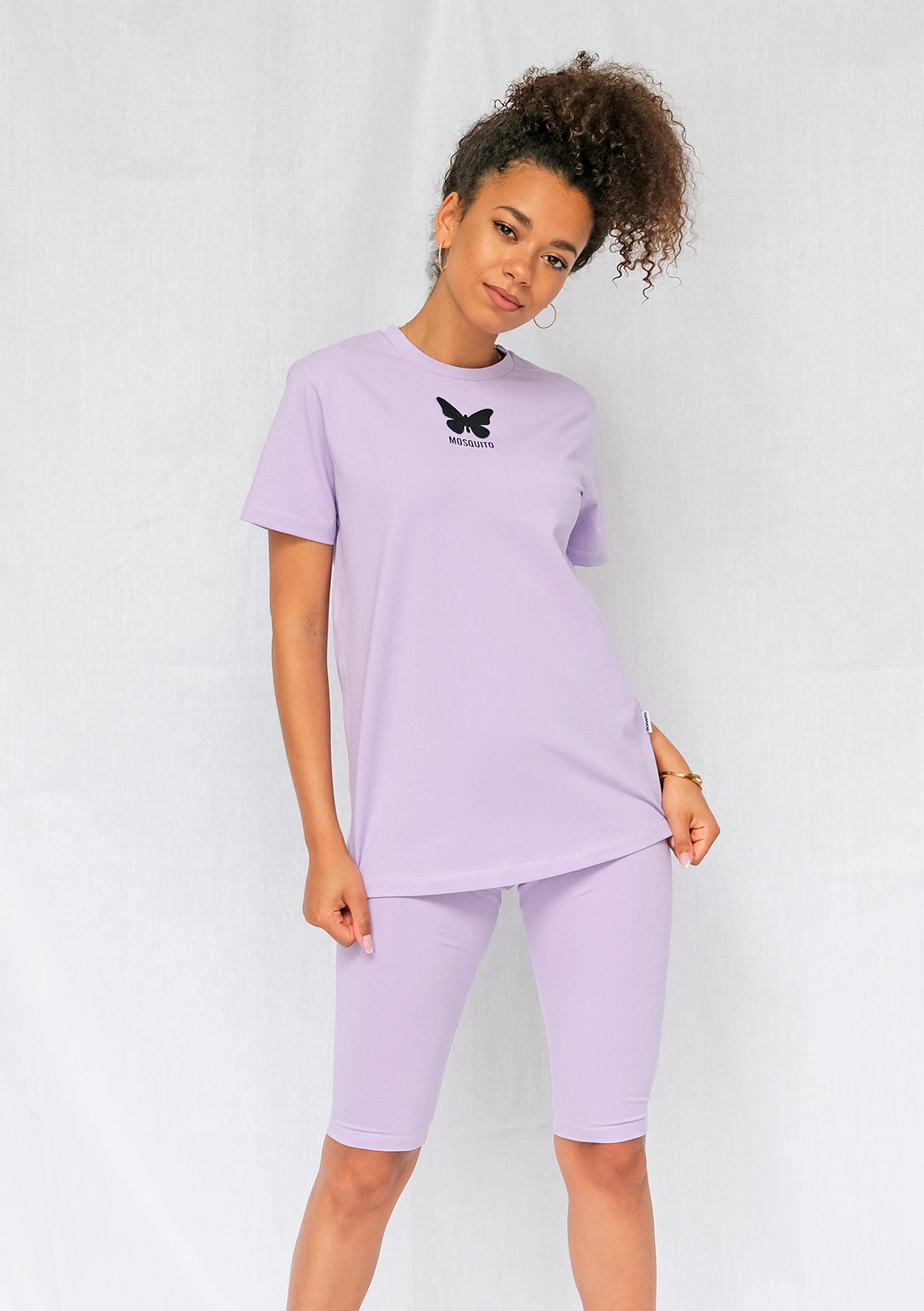 Proponowana przez nas koszulka to kwintesencja dziewczęcego stylu. Motyw motyla jest obecny w tej chwili na wielu ubraniach. Nasza koszulka zachowała jednak w tym wszystkim również swoją prostotę. Przede wszystkim ozdobiona jest tylko niewielkim logo w kształcie motyla w kolorze czarnym. Pod spodem znajduje się napis Mosquito, który także zachowany został w tej kolorystyce. Na uwagę zasługuje także liliowy kolor, który jest prawdziwym hitem tego lata. Przede wszystkim pasuje on do każdej karnacji i jest bardzo kobiecy. Nasze koszulki mają nieco luźniejszy charakter. Typowy oversize. Szersze i dłuższe są także rękawki. Tył natomiast jest całkowicie gładki. Dostępna jest ona w czterech standardowych u nas rozmiarach, czyli XS, S, M oraz L. Wykonana jest także z materiałów najwyższej jakości, czyli bawełny i laycry. Bawełna wysokiego gatunku zapewnia jej miękkość i przepuszczalność powietrza, a laycra natomiast elastyczność i najlepsze dopasowanie.