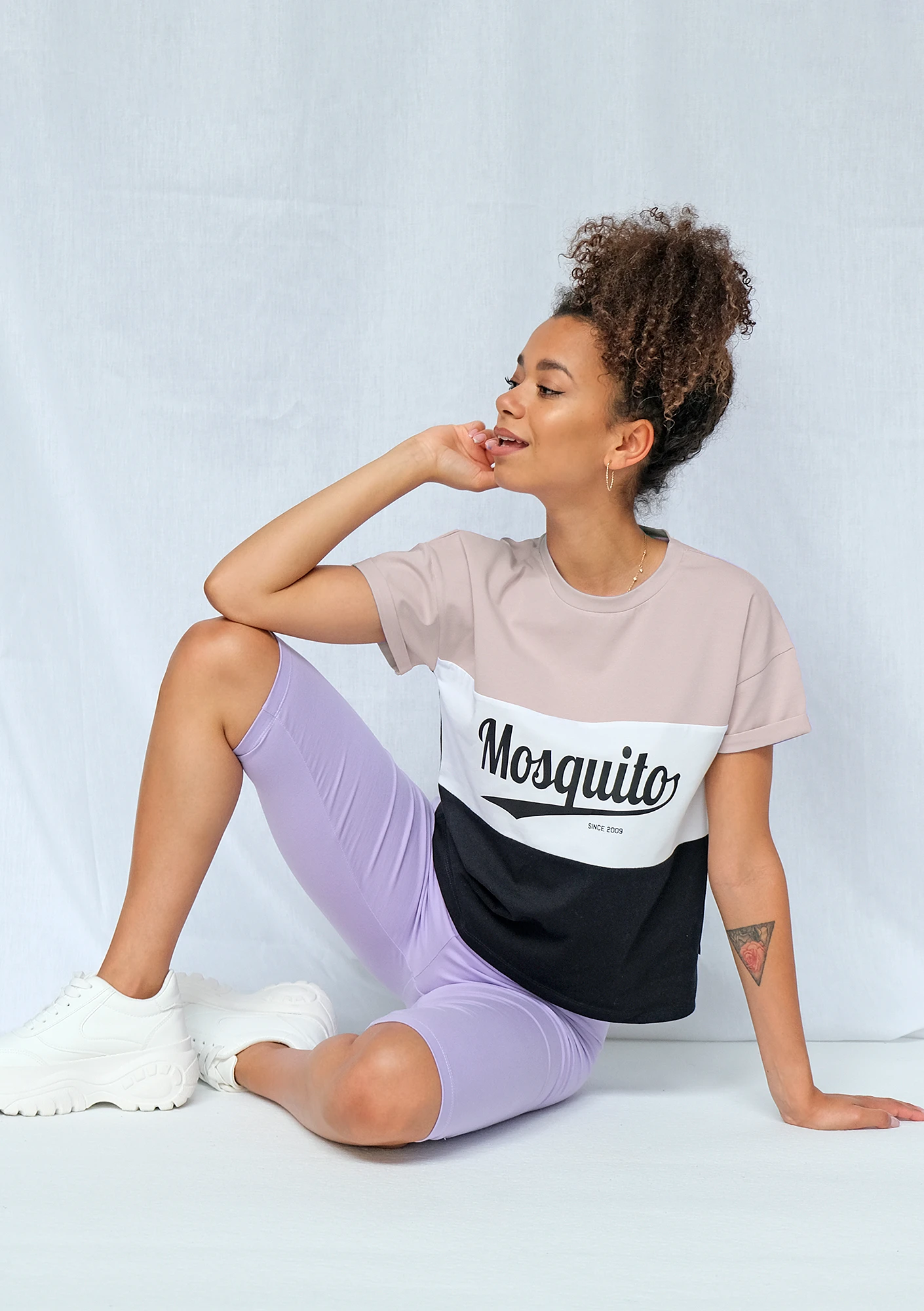 Prezentowana bluzka damska z krótkim rękawem to produkt szyty w Polsce z wysokogatunkowej bawełny z domieszką elastycznych włókien, nadających rozciągliwość. Dzięki nim koszulka dobrze układa się na ciele i nie krępuje ruchów, pozostawiając swojej właścicielce pełną swobodę. Niewątpliwym atutem T-shirtu jest także jego luźny krój, który pozwala nosić go na kilka sposobów. To, co wyróżnia prezentowany model to przede wszystkim niebanalny design. Beżowo czarną koszulkę przecina bowiem biała wstawka z wyrazistym, czarnym nadrukiem firmowym. Produkt ma więc bardzo charakterystyczny wygląd, nadający kierunek każdej stylizacji. Warto zestawiać go z prostym i minimalistycznym dołem, aby sportowo-kobiecy styl mógł grać w nowych połączeniach główną rolę. Koszulka idealnie sprawdzi się na co dzień - nie tylko do ćwiczeń, ale również podczas spacerów czy zakupów.