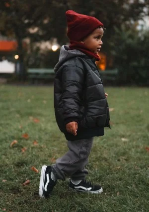 Niezwykle modna, pikowana kurtka bomber dla chłopców i dziewczynek. Charakterystyczny, półokrągły kołnierzyk oraz wygodne ściągacze na dole i przy rękawach nadają jej zadziornego charakteru. Zapięcie na zamek błyskawiczny jest proste i ułatwia samodzielne zapinanie. Czarny kolor o błyszczącej fakturze idealnie komponuje się z delikatnym pikowaniem. Bomberka posiada dwie kieszenie z estetycznym, miłym w dotyku wykończeniem. Na piersi znajduje się logo. Ta czarna kurtka unisex to ciekawy, lekko oversizowy krój w nowej, dziecięcej odsłonie. Uniwersalny wzór świetnie pasuje zarówno dziewczynkom jak i chłopcom. Doskonale sprawdzi się w sezonie przejściowym. Bomber może być wykorzystany jako samodzielne okrycie lub w połączeniu ze swetrem czy bluzą, tworząc ciepłą a przy tym oryginalną stylizację.