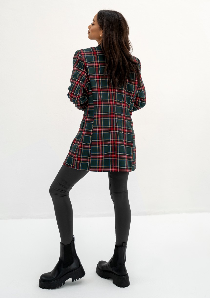 Rush - Oversizowa marynarka w kratę z naszywką M Zielona