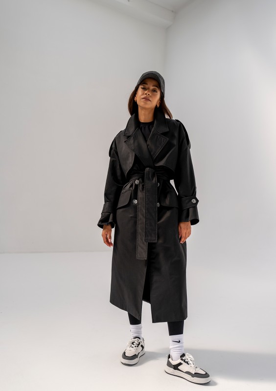 Arian - Klasyczny dwurzędowy trencz Czarny