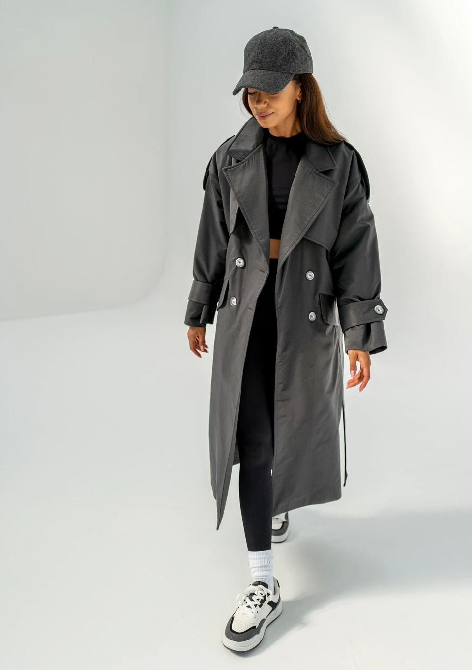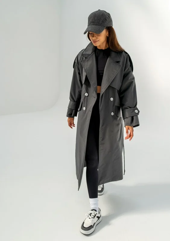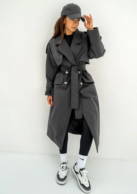 Dwurzędowy trencz damski to esencja ponadczasowej klasyki i elegancji. Wybierz grafitowy model, jeśli cenisz minimalizm.