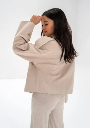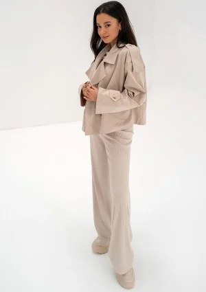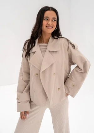 Krótki trencz dwurzędowy o modnym kroju oversize w klasycznym beżowym kolorze jest odpowiedni na wiele różnych okazji. Możesz nosić go do pracy, na spotkania ze znajomymi, do codziennych wyjść czy nawet na nieformalne spotkania biznesowe. Jego elegancki styl sprawia, że doskonale komponuje się zarówno z casualowymi, jak i bardziej formalnymi stylizacjami, dodając im nuty klasy i szyku.