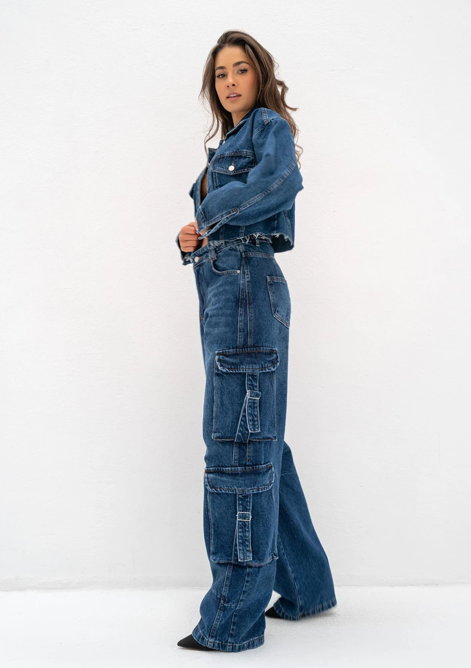 Kurtki i płaszcze jeansowe w naszej kolekcji występują w przeróżnych formach, dzięki temu dopasujesz model, który najbardziej Ci odpowiada! Mate z nich wszystkich jest najkrótsza, ucięta do stylowej formy typu crop. Odsłania sylwetkę, dzięki temu dodaje zmysłowości, mimo swojego zadziornego, rockowego charakteru. Jest bardzo wszechstronna i za każdym razem uzyskasz dobry efekt stylizując ją z dowolnymi elementami. Bardzo dobrze wygląda w połączeniu z naszymi granatowymi jeansami typu cargo Cork, jak i jeansową spódnicą Carri. Wykonana z 100% bawełny bez dodatków, trzyma sztywną, wytrzymałą i nierozciągliwą formę klasycznego denimu.