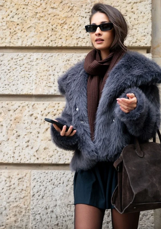 Krótkie, sztuczne futerko podbiło świat mody! Ten lekki i przyjemny w dotyku materiał to hit sezonu. Jego uniwersalność pozwala na stworzenie wielu stylizacji, zarówno na co dzień, jak i na specjalne okazje. Efektowny design od razu zwróci uwagę i doda stylu każdej sukience, eleganckiemu zestawieniu marynarki i spodni, czy nawet casualowym jeansom i koszulce. Ten model ma piękny, antracytowy kolor.