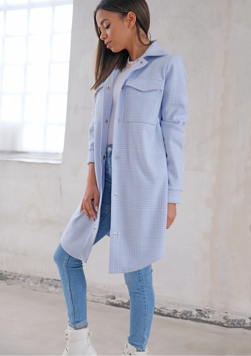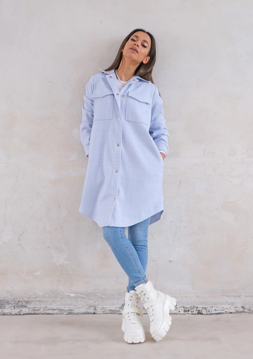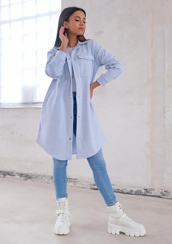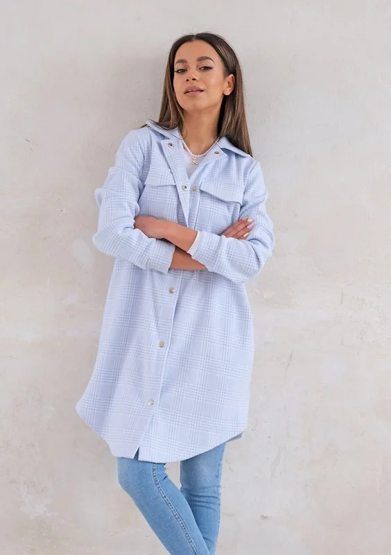 Długa koszula wierzchnia w kratkę Błękitna