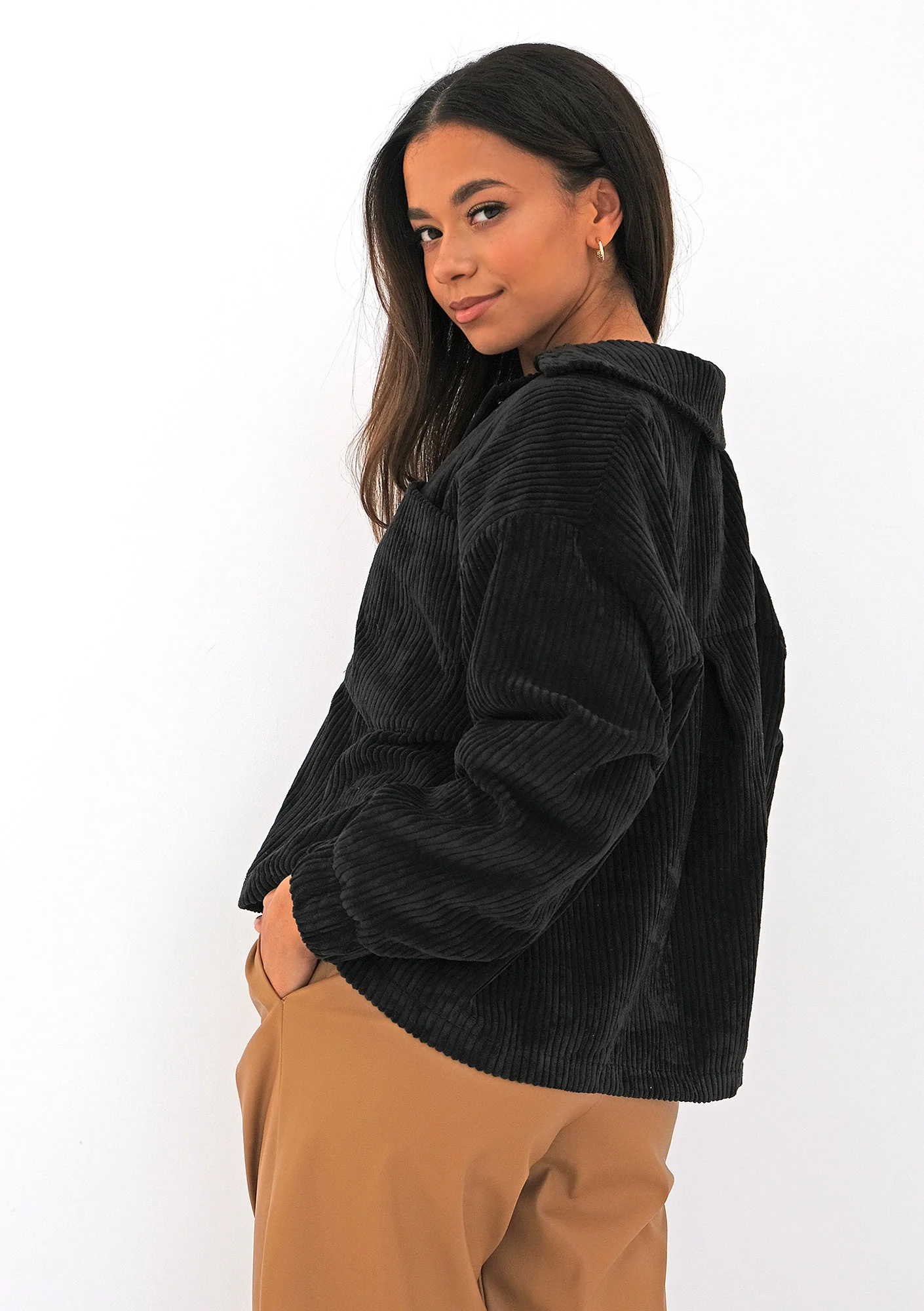 Bufo - Krótka koszula oversize ze sztruksu Czarna