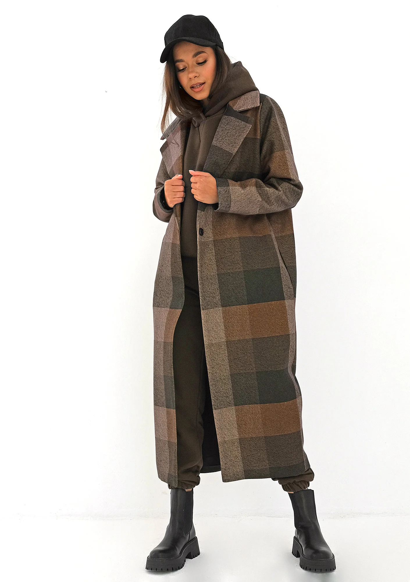 Sabo - Płaszcz z flauszu w kratę Brązowy