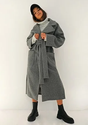 Fawly - Płaszcz wiązany w talii Szary