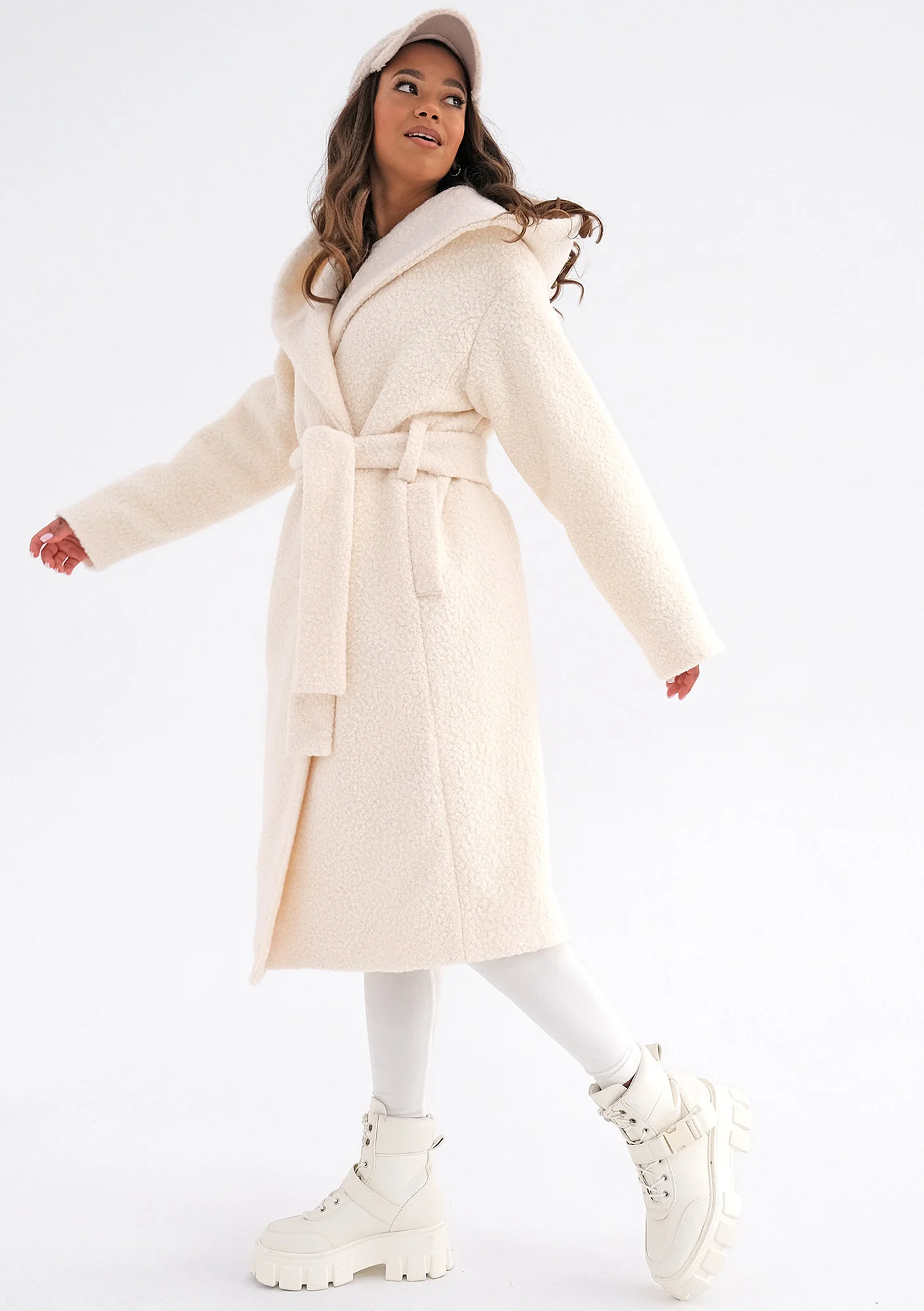 Amelie - Płaszcz z kapturem boucle Vanilla