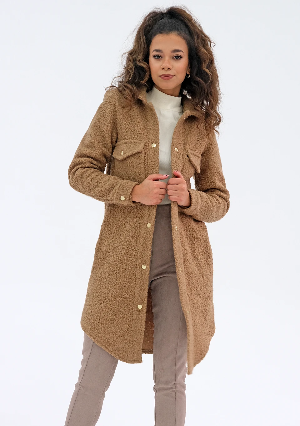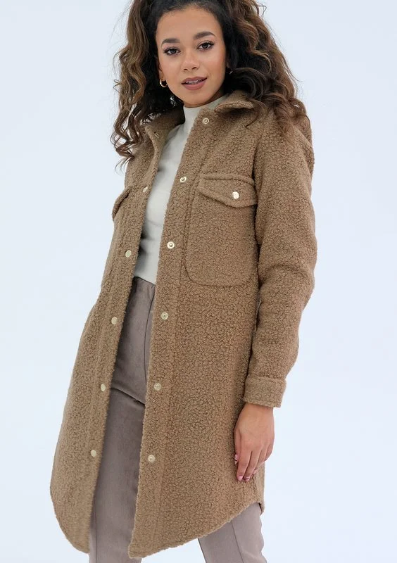 Shebi - Płaszcz koszulowy z bukli Camel