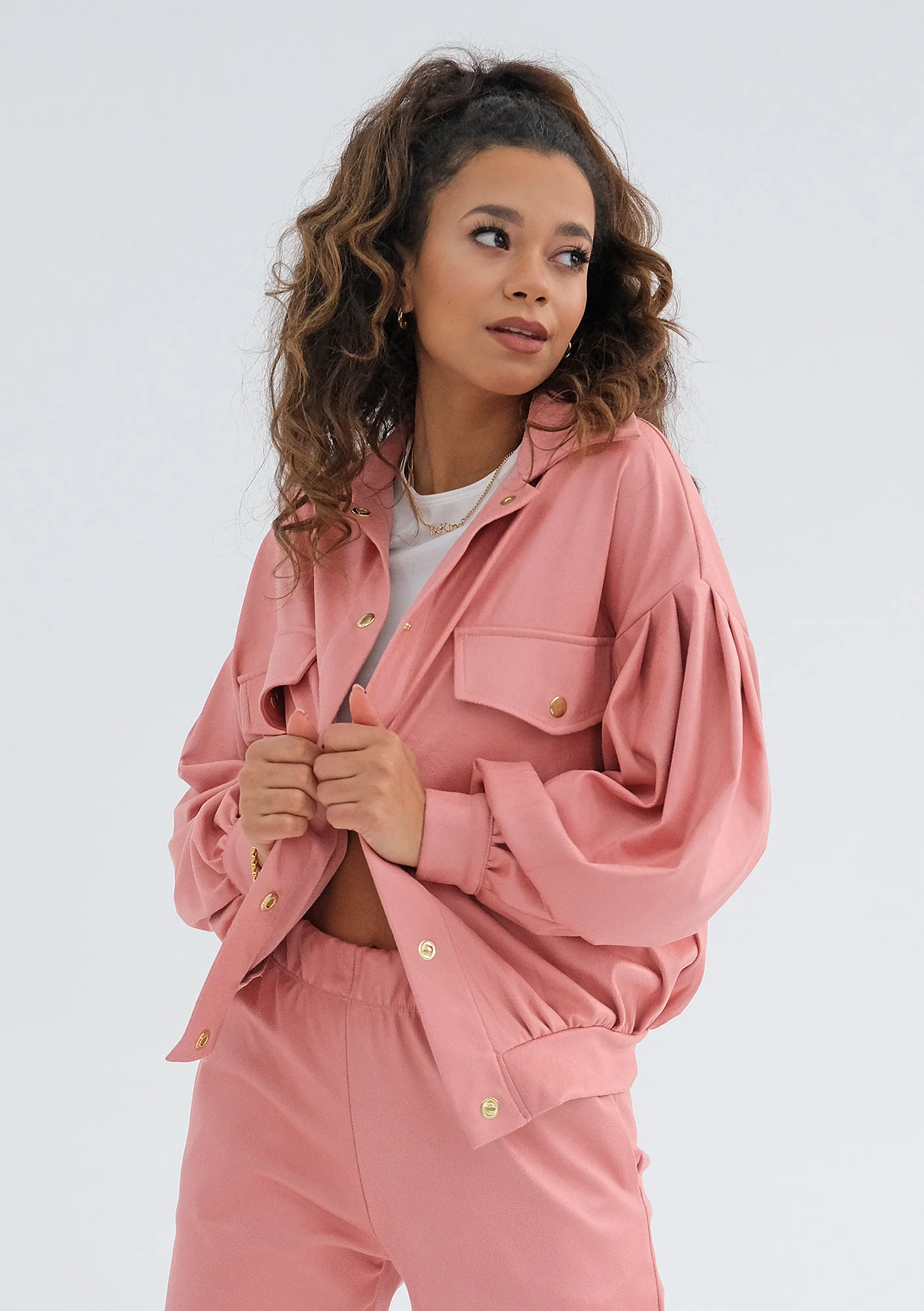 Layzy - Koszulowa kurtka oversize Różowa