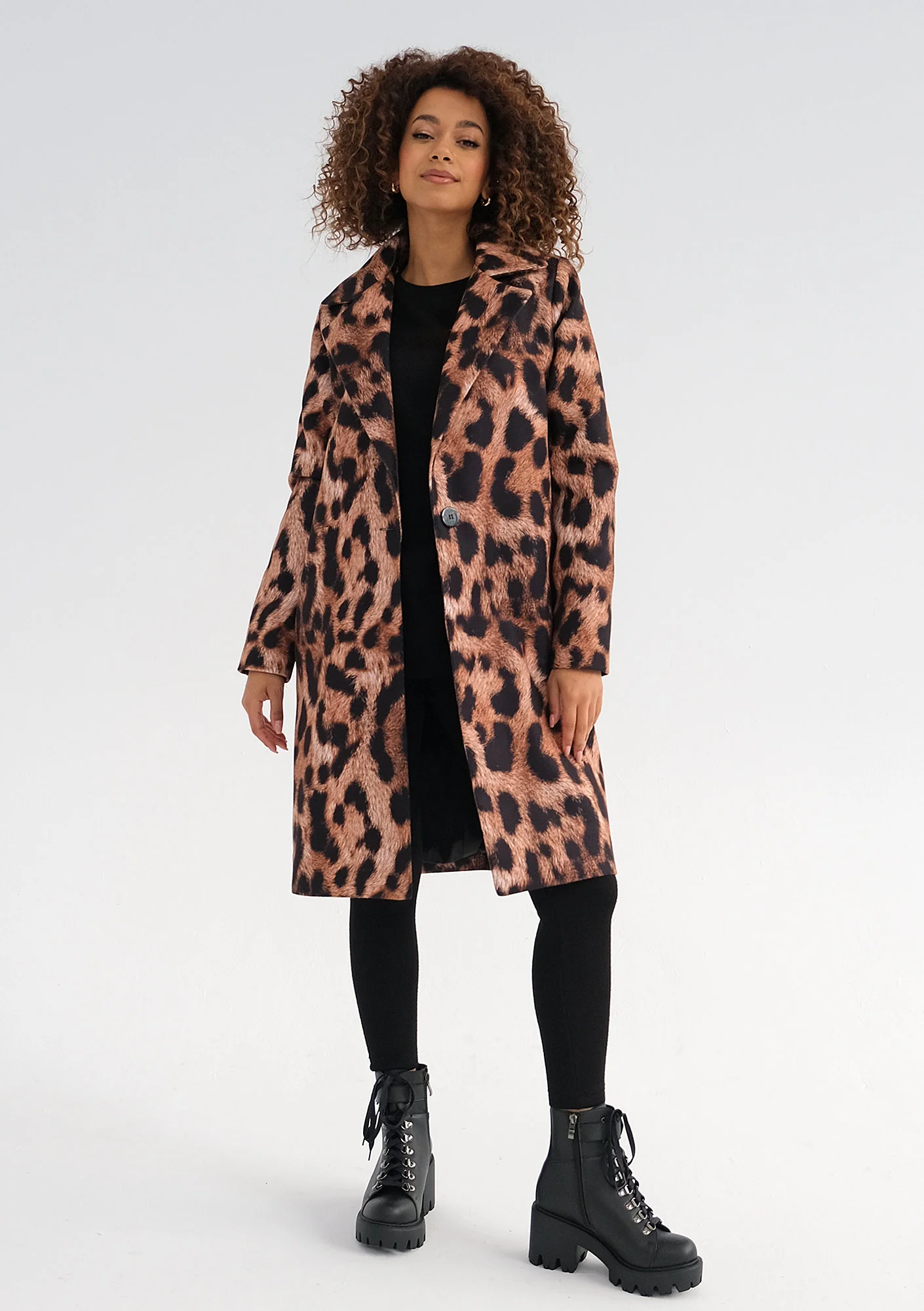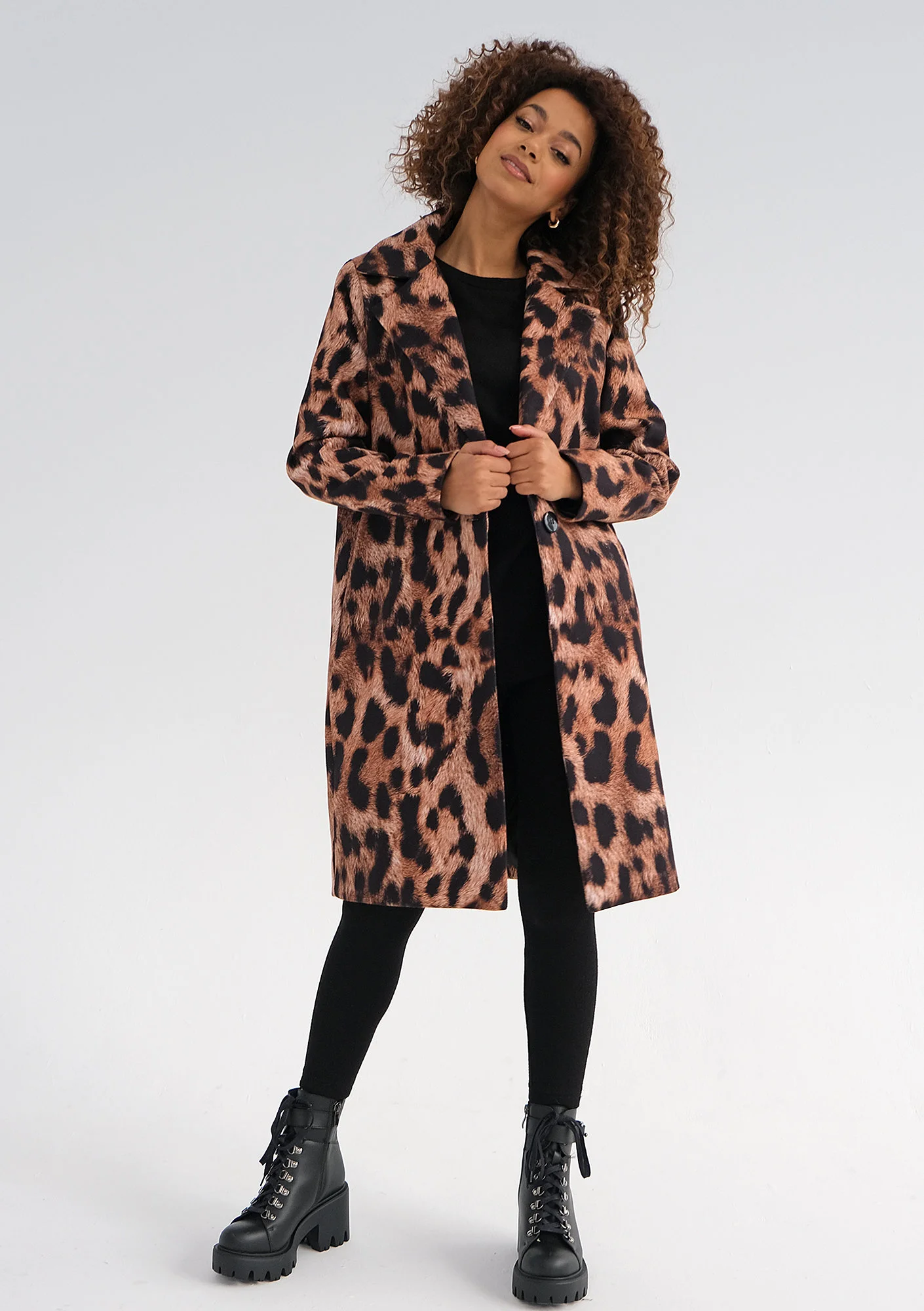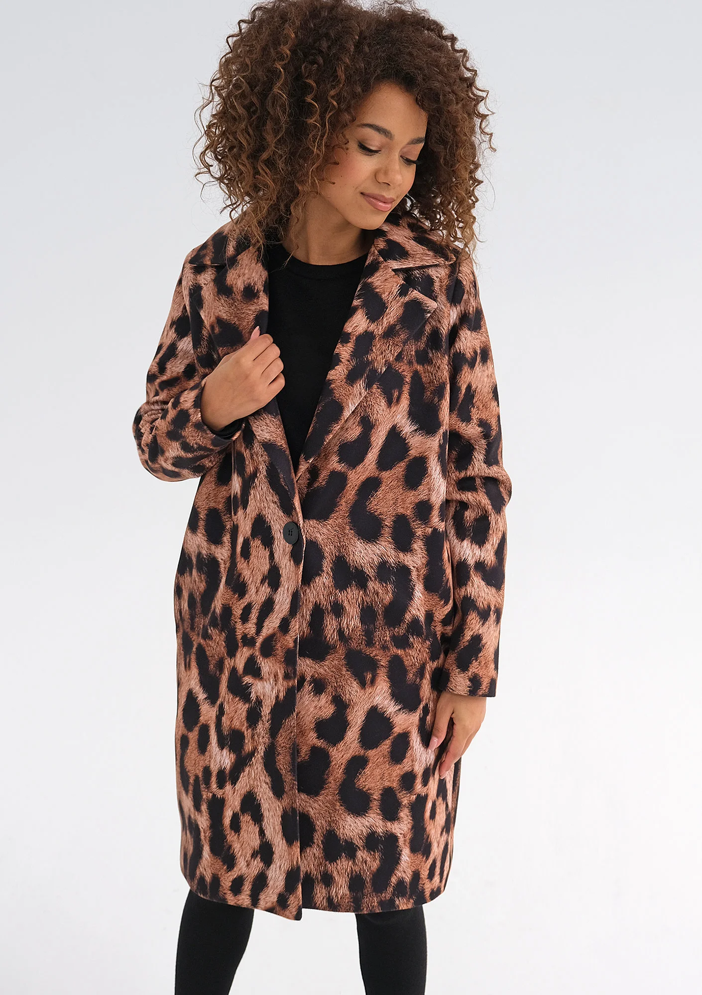 Moris - Klasyczny płaszcz drukowany w cętki Brązowy