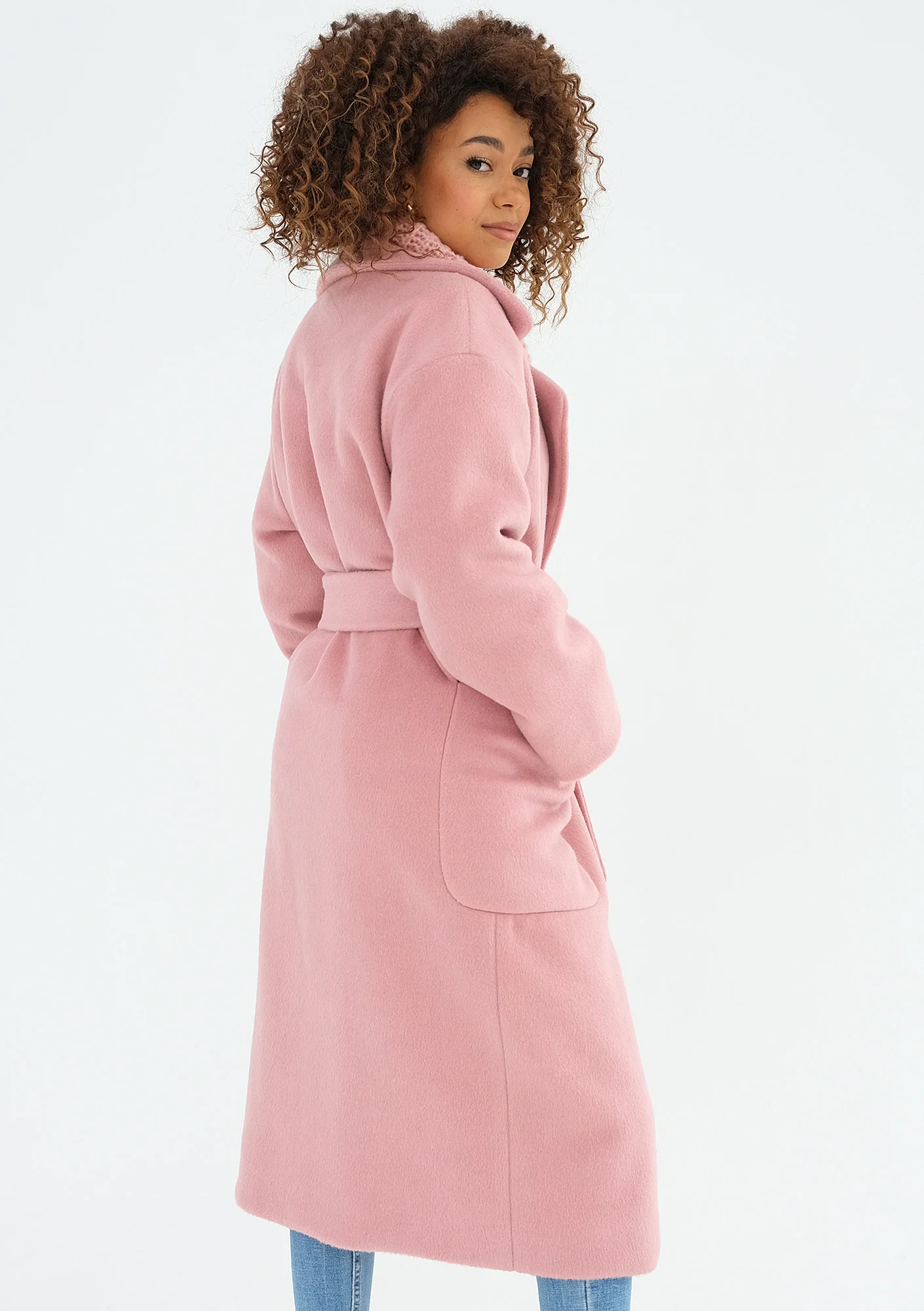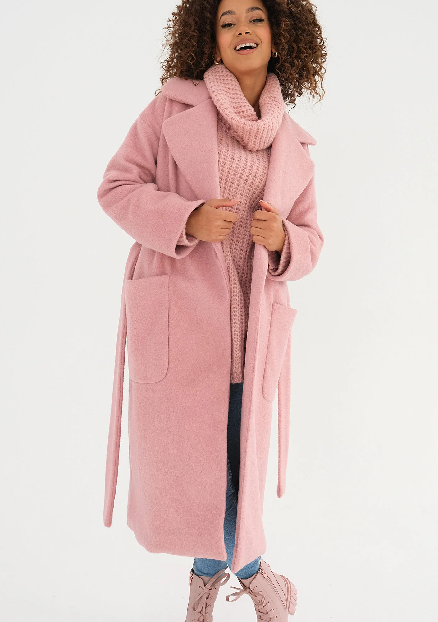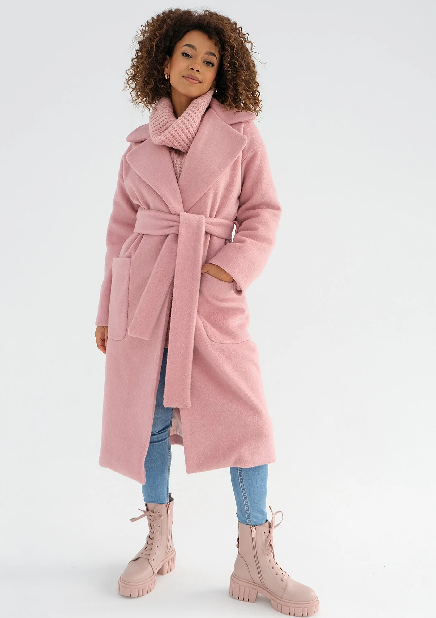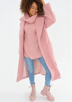 Różowy płaszcz damski z paskiem i dużymi kieszeniami posiada bardzo klasyczny i uniwersalny fason. To model o wszechstronnym przeznaczeniu, dla minimalistek, które ograniczają swoją kolekcję do ponadczasowych krojów. Pudrowy, elegancki płaszcz został zaprojektowany z myślą o chłodnej porze jesienno – zimowej. Sprawdzi się w polskich warunkach pogodowych przez większość dni najzimniejszego sezonu.