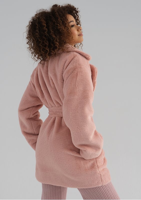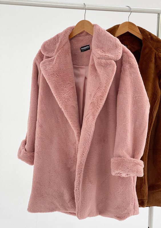 Osha - Płaszcz ze sztucznego futerka Pudrowy