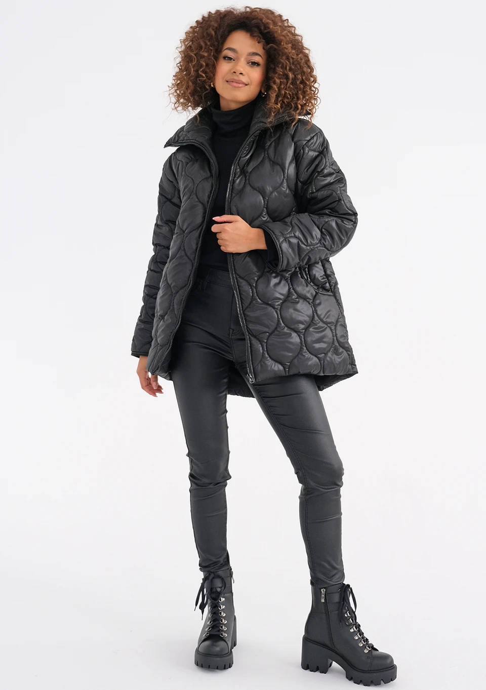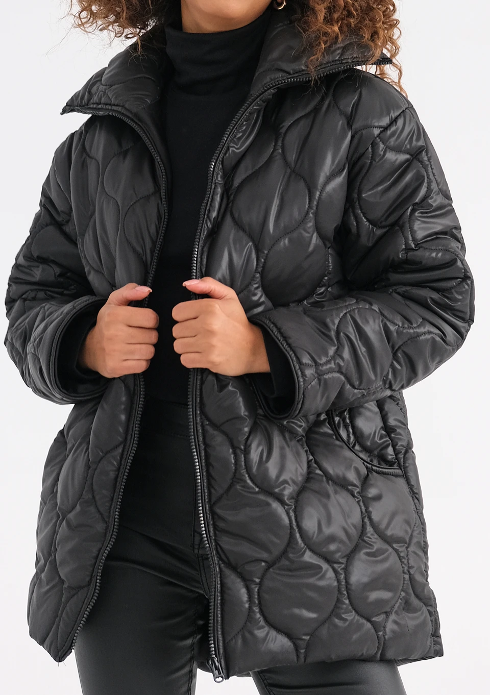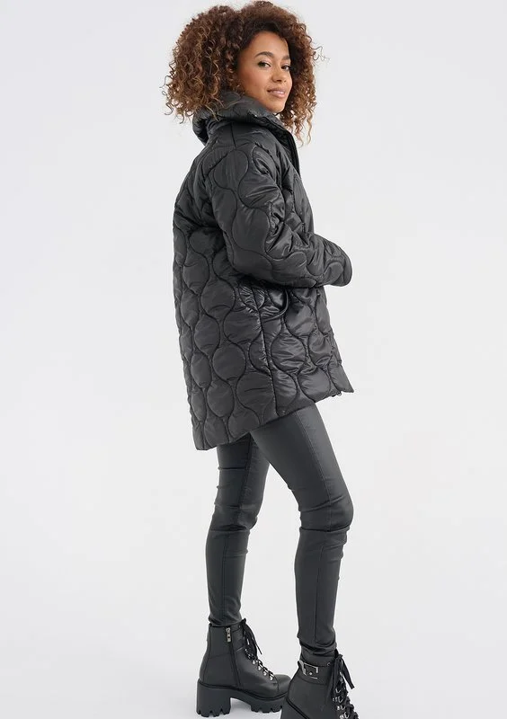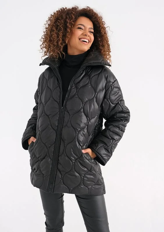 Rena - Długa kurtka pikowana Czarna