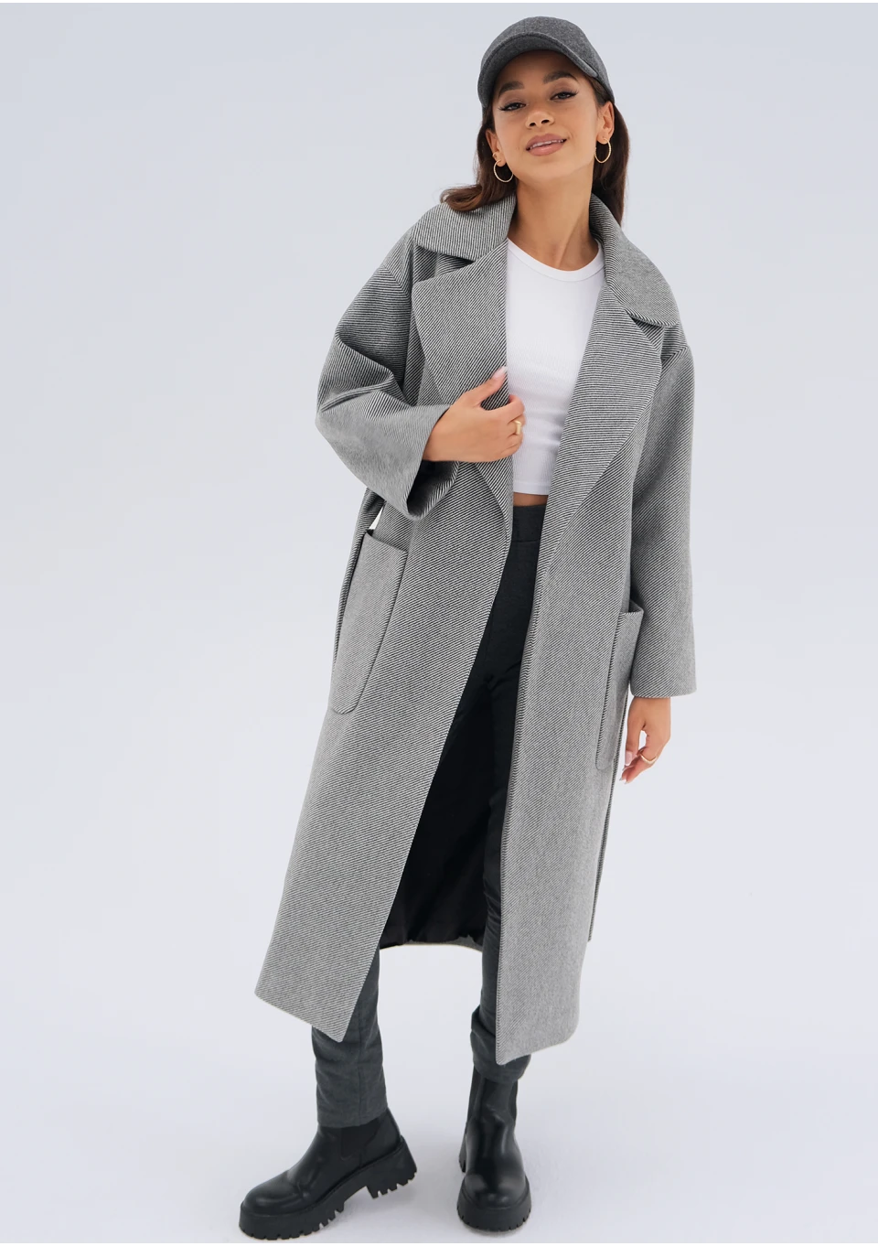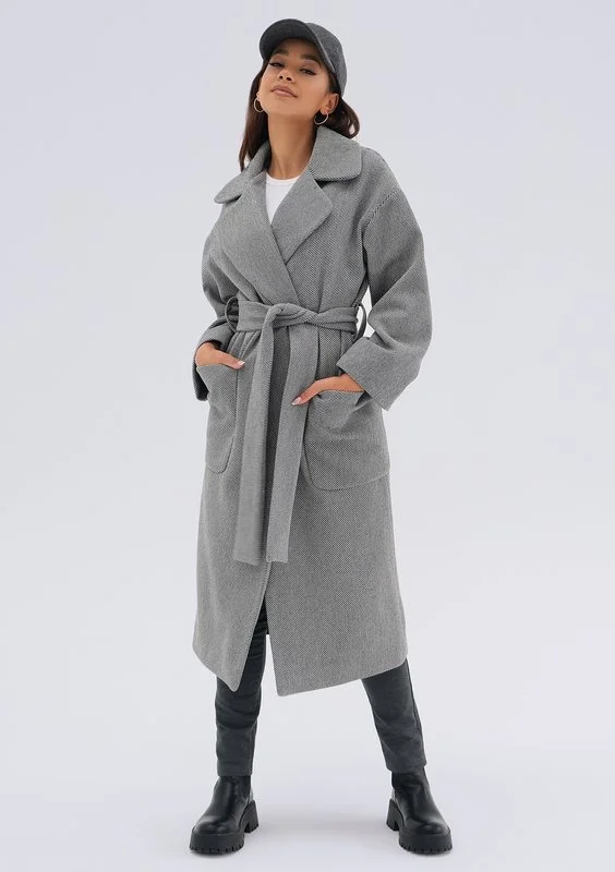 Sage - Płaszcz wiązany w talii w prążki Szary