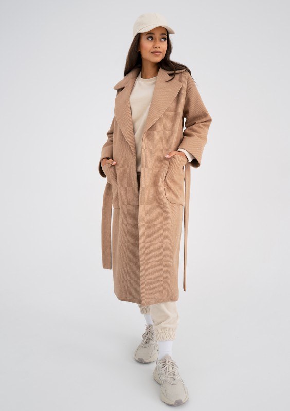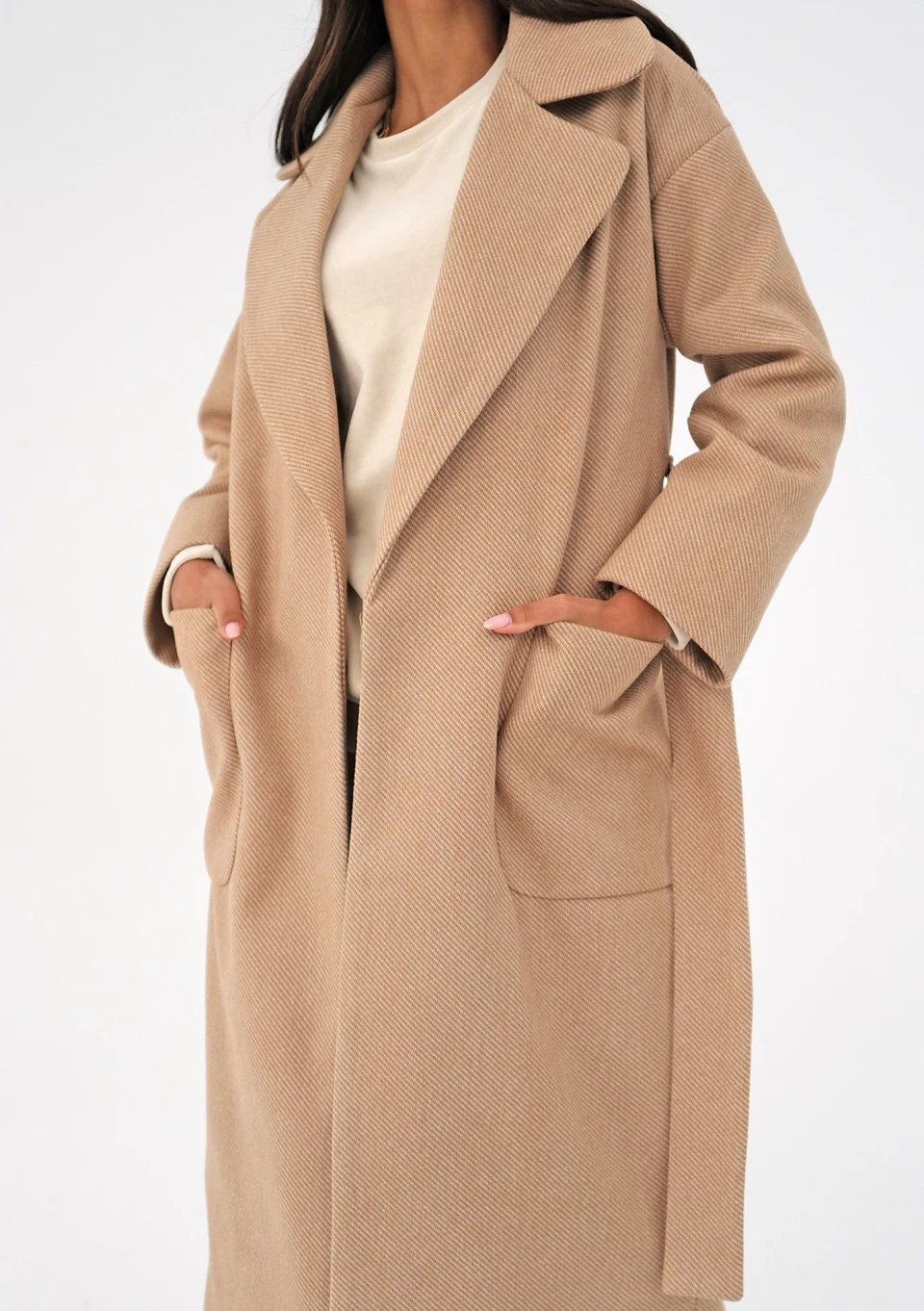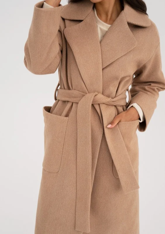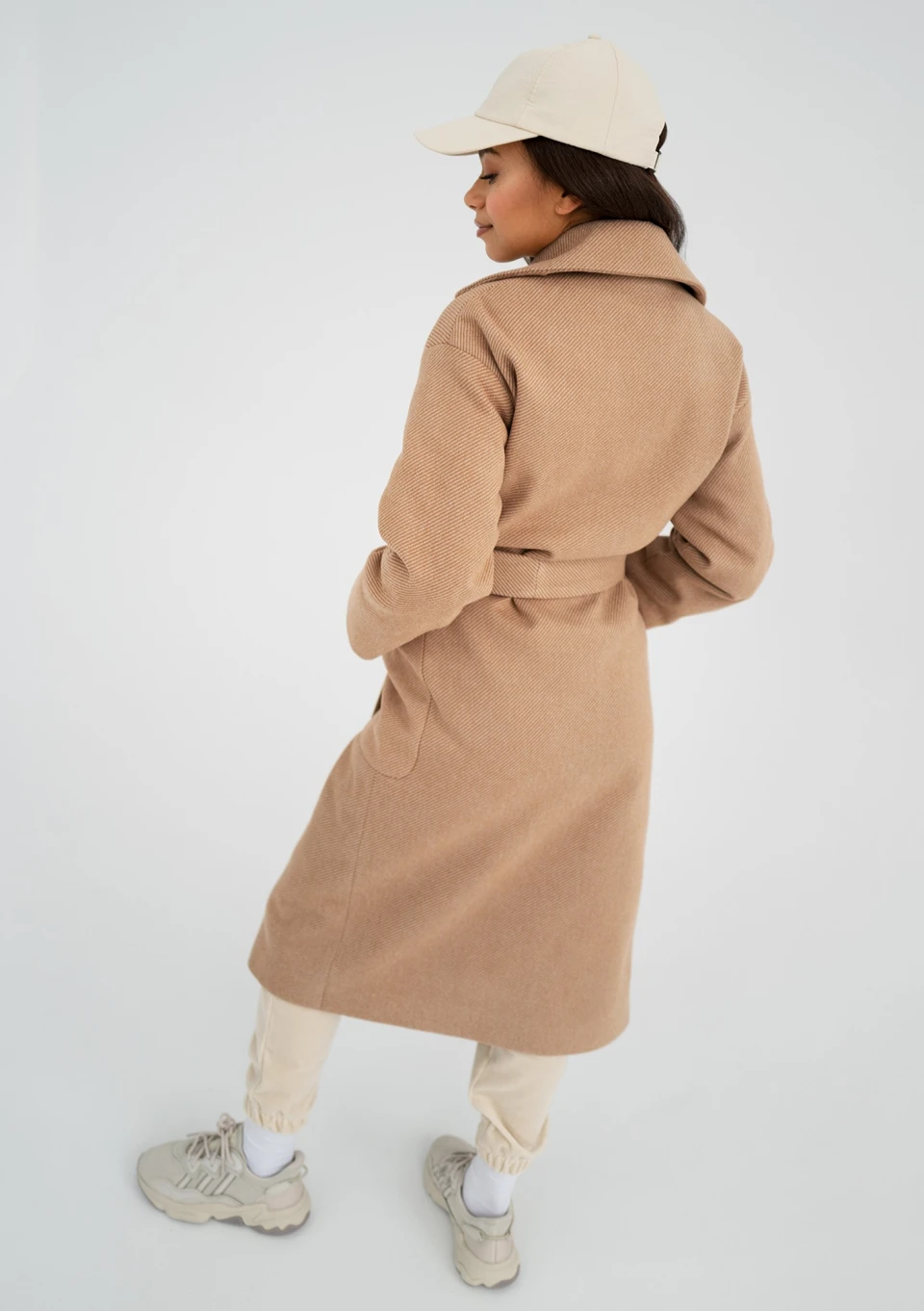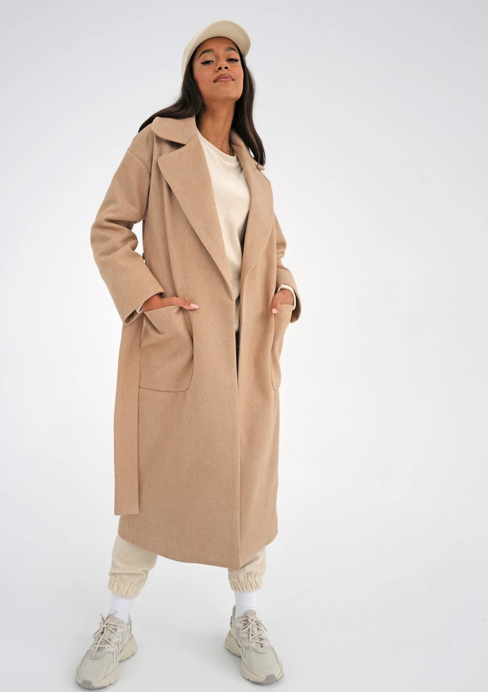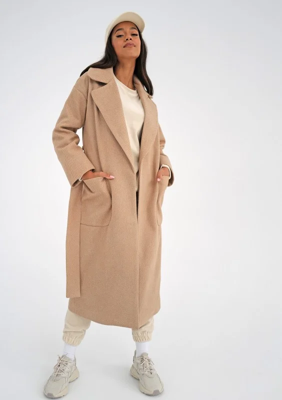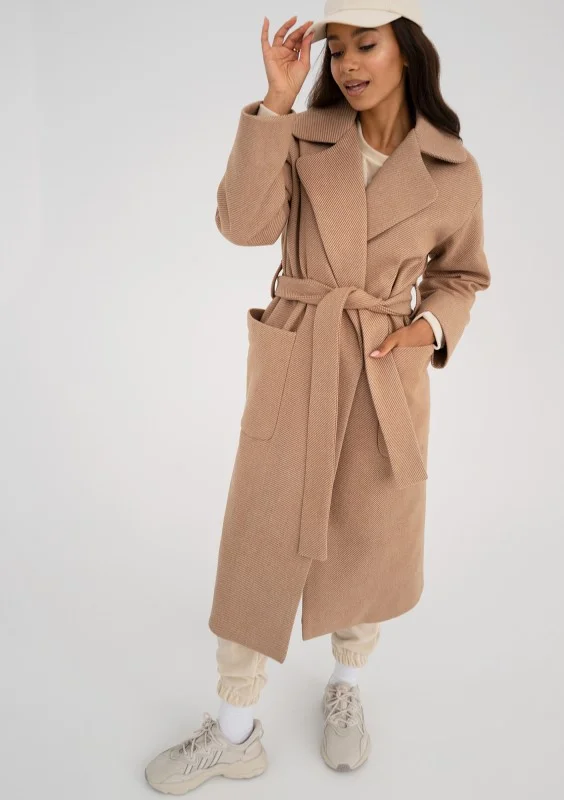 Sage - Płaszcz wiązany w talii w prążki Beżowy
