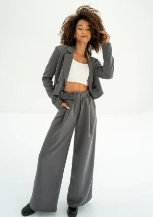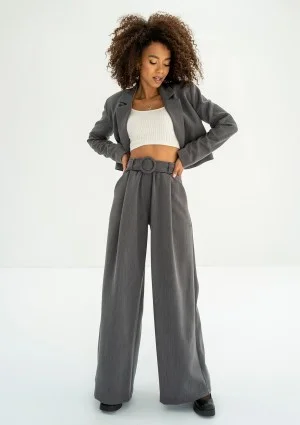 Grafitową marynarkę połącz z dedykowaną spódniczką mini Lili lub szerokimi spodniami Shani. Stwórz elegancką stylizację, która wpisuje się w kod business casual. Zaprojektowana i uszyta w polskiej pracowni, z materiału o świetnych walorach. Marynarka nie gniecie się i świetnie leży na sylwetce. Posiada poduszki na ramionach, które nadają modnego kantu.