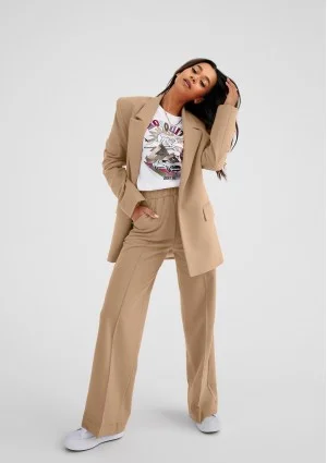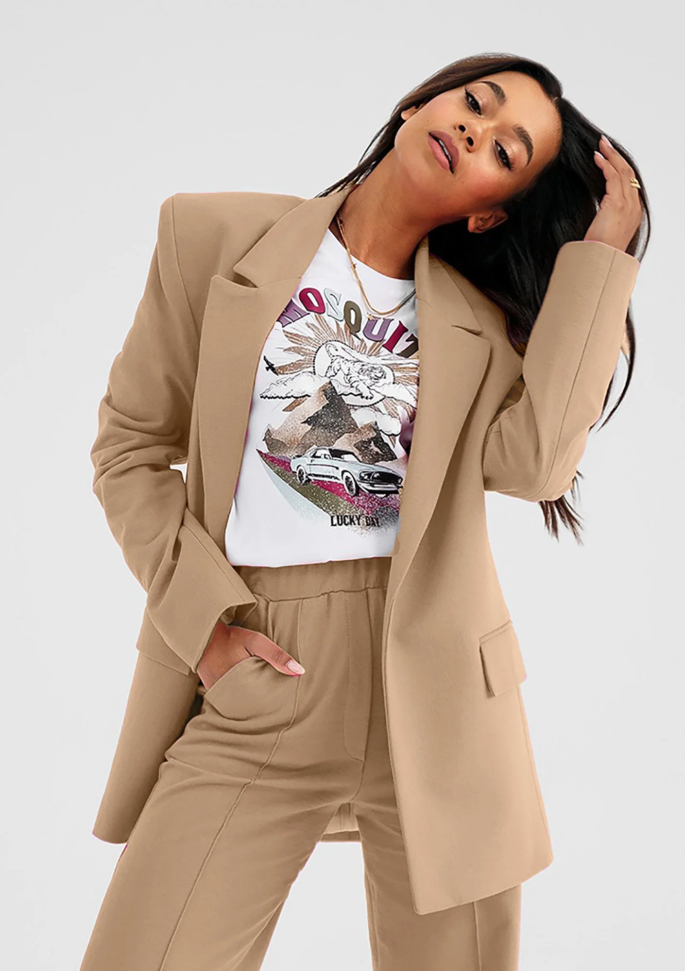 Tajemnicą doskonałego stylu jest zręczne zestawianie podstawowych, uniwersalnych ubrań z delikatnymi akcentami najnowszych trendów. Dodając do prostego, codziennego outfitu taką beżową marynarkę, zyskasz wyjątkowy, wyrazisty look.