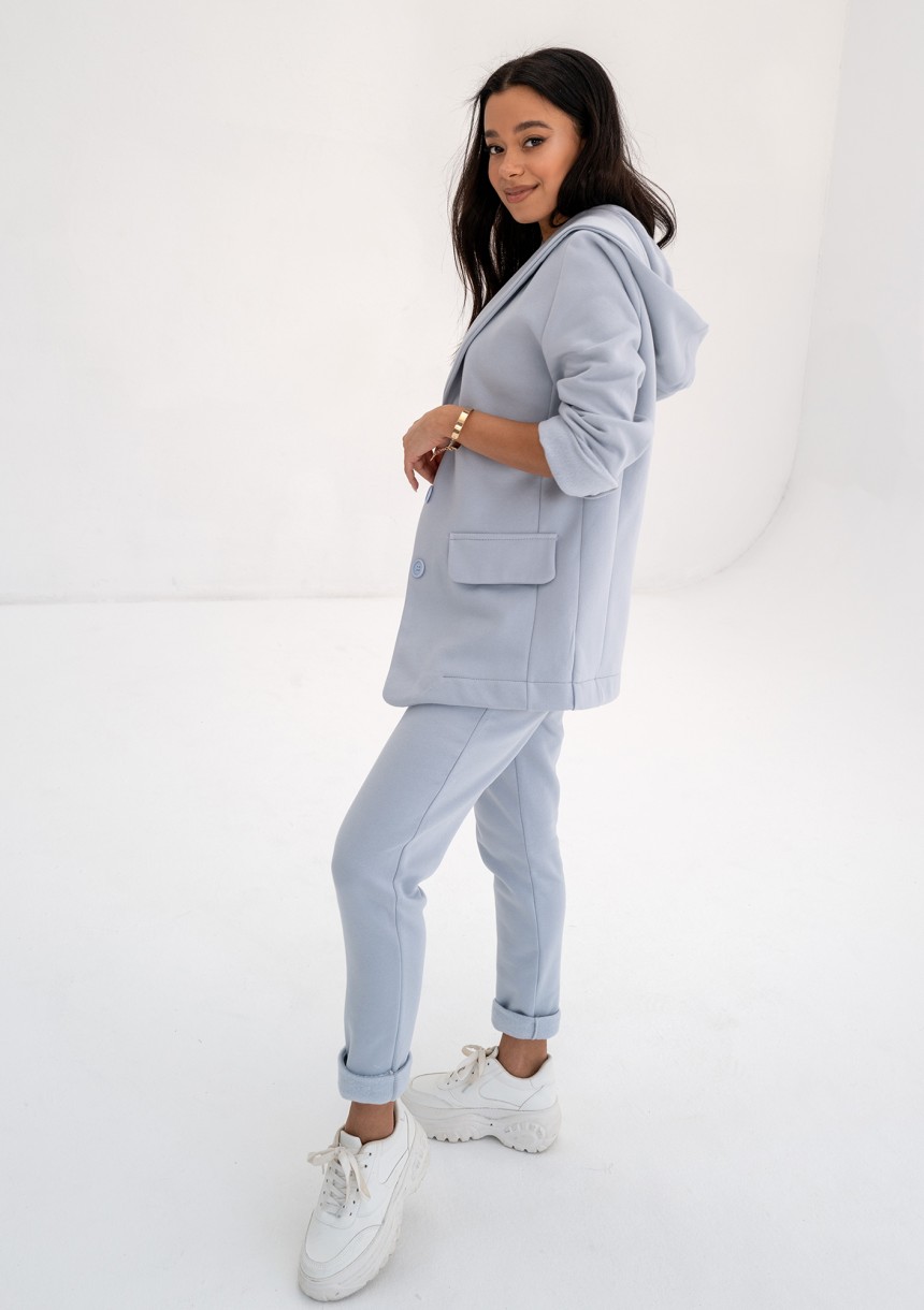Kaptur to nietuzinkowy detal, który nadaje marynarce oryginalności. Każda stylizacja z fasonem Kerry będzie niezwykle wygodna i wszechstronna. Błękitna marynarka damska z kapturem ma sportowy charakter, co podkreśla wykonanie z miękkiej, bawełnianej dzianiny dresowej. Oczaruje każdą miłośniczkę praktycznej i casualowej mody.
