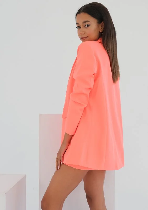 Neonowa marynarka to doskonała propozycja odważnej i niezwykle energetyzującej stylizacji na lato. Posiada szykowny fason o długim kroju, odpowiednio skrojony na kobiecą sylwetkę.