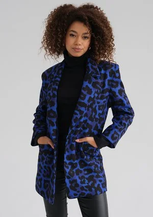 Dodaj odrobinę kociego akcentu do swojego look’u dzięki tej wyrazistej marynarce z modnym nadrukiem w panterkę. Połącz ją z czarnymi ubraniami i masywnymi butami, aby uzyskać jeszcze fajniejszy klimat. Bez względu na to, jak wystylizujesz tę marynarkę, efekt końcowy będzie zawsze ostry.