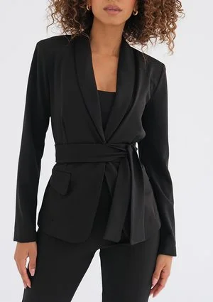 Goma - Marynarka damska z wiązaniem Czarna
