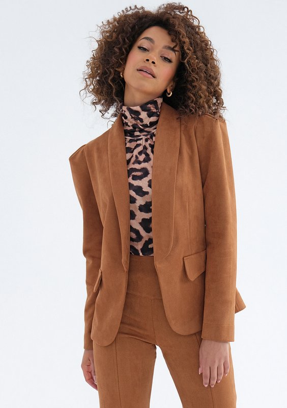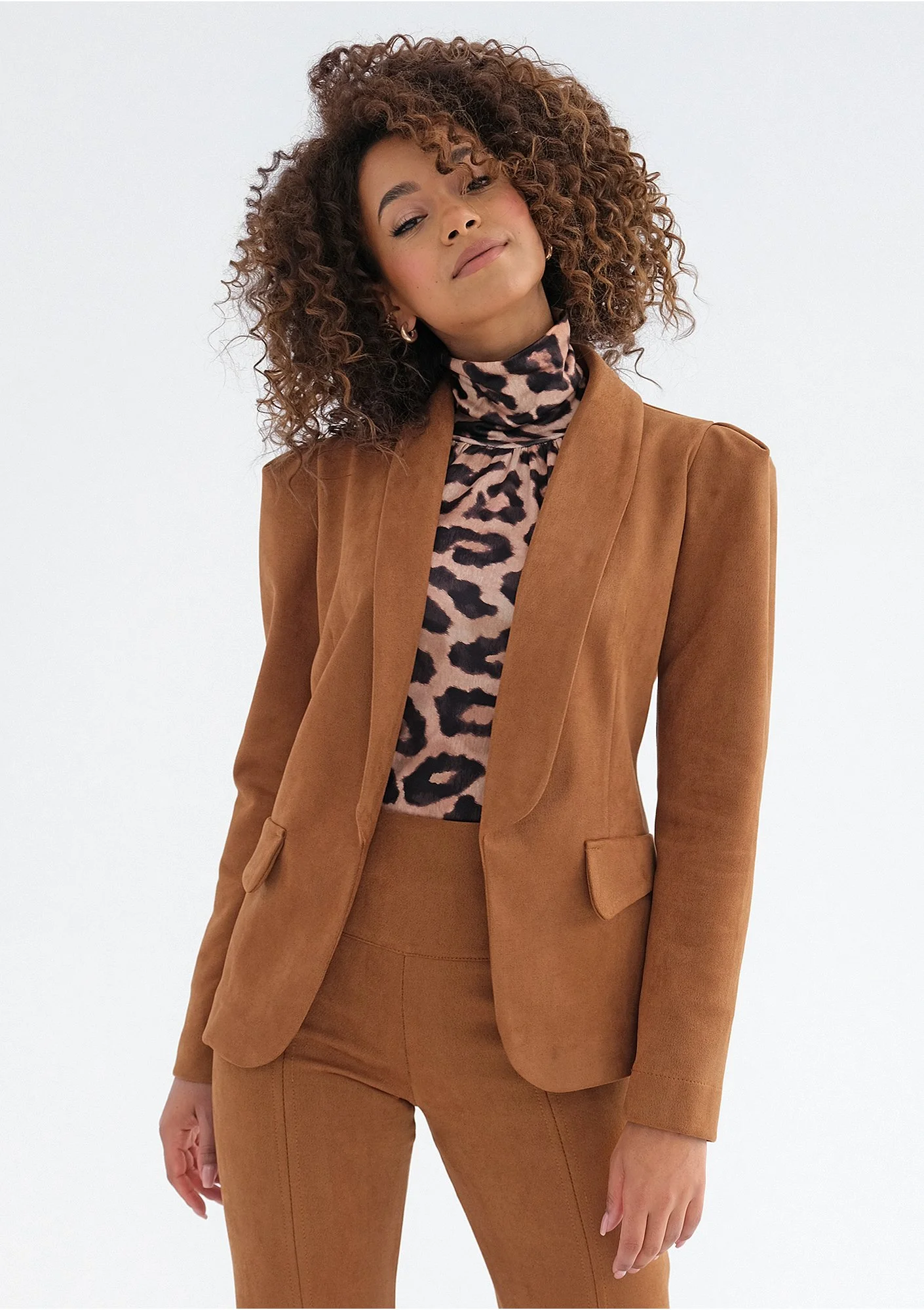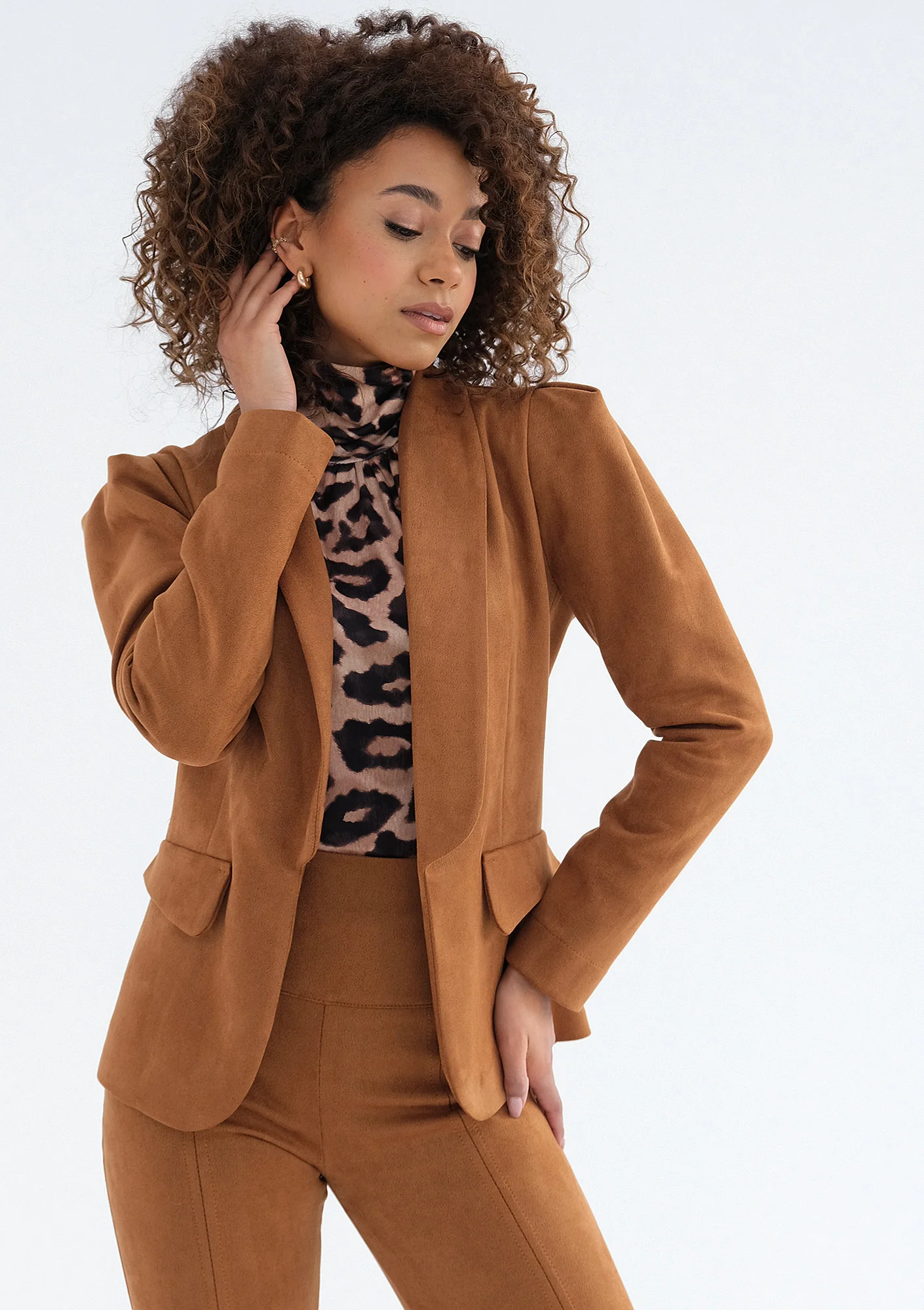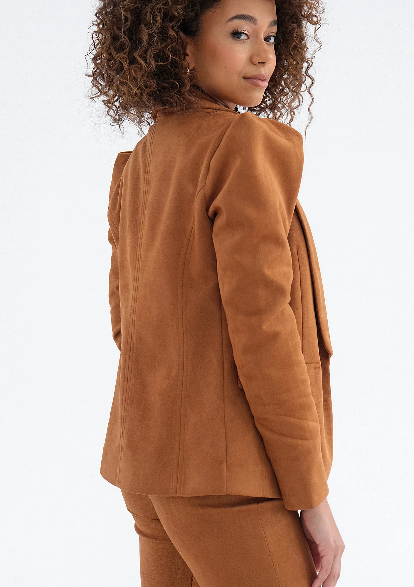 Delani - Marynarka damska z imitacji zamszu Karmelowa
