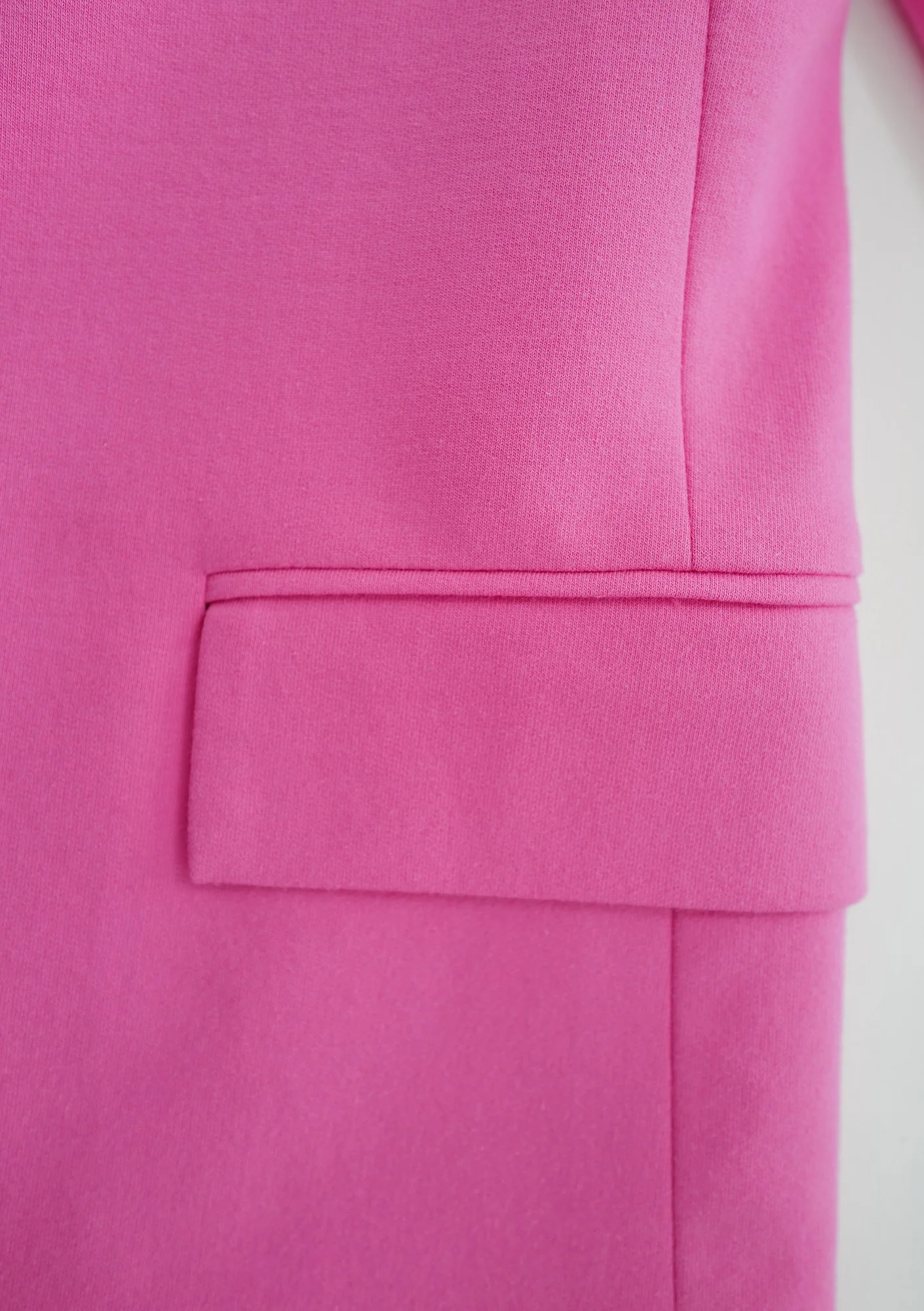 Sekretem pięknego stylu jest umiejętne łączenie uniwersalnych, bazowych ubrań z drobnym dodatkiem designerskich trendów. Okraszając prostą, codzienną kombinację tak wyrazistą marynarką w różowym kolorze zabłyśniesz nieprzeciętnym, wyrazistym wizerunkiem. Różowa marynarka posiada poduszki, dzięki którym trzyma piękną konstrukcję z kantem. Od spodu posiada odpowiedni materiał, który przeciwdziała elektryzowaniu się i mechanicznym uszkodzeniom odzieży. Podszewka jest poliestrowa, natomiast pozostałe włókna to naturalna bawełna. Kolorowe marynarki damskie z linii Zura wykonaliśmy w rozmiarach XS – L, w różnych barwach. Różowy model zdecydowanie zapewni najbardziej nietuzinkowy i wyrazisty look spośród dostępnych odcieni. Do modelu przygotowaliśmy dedykowane spodnie z szeroką nogawką.