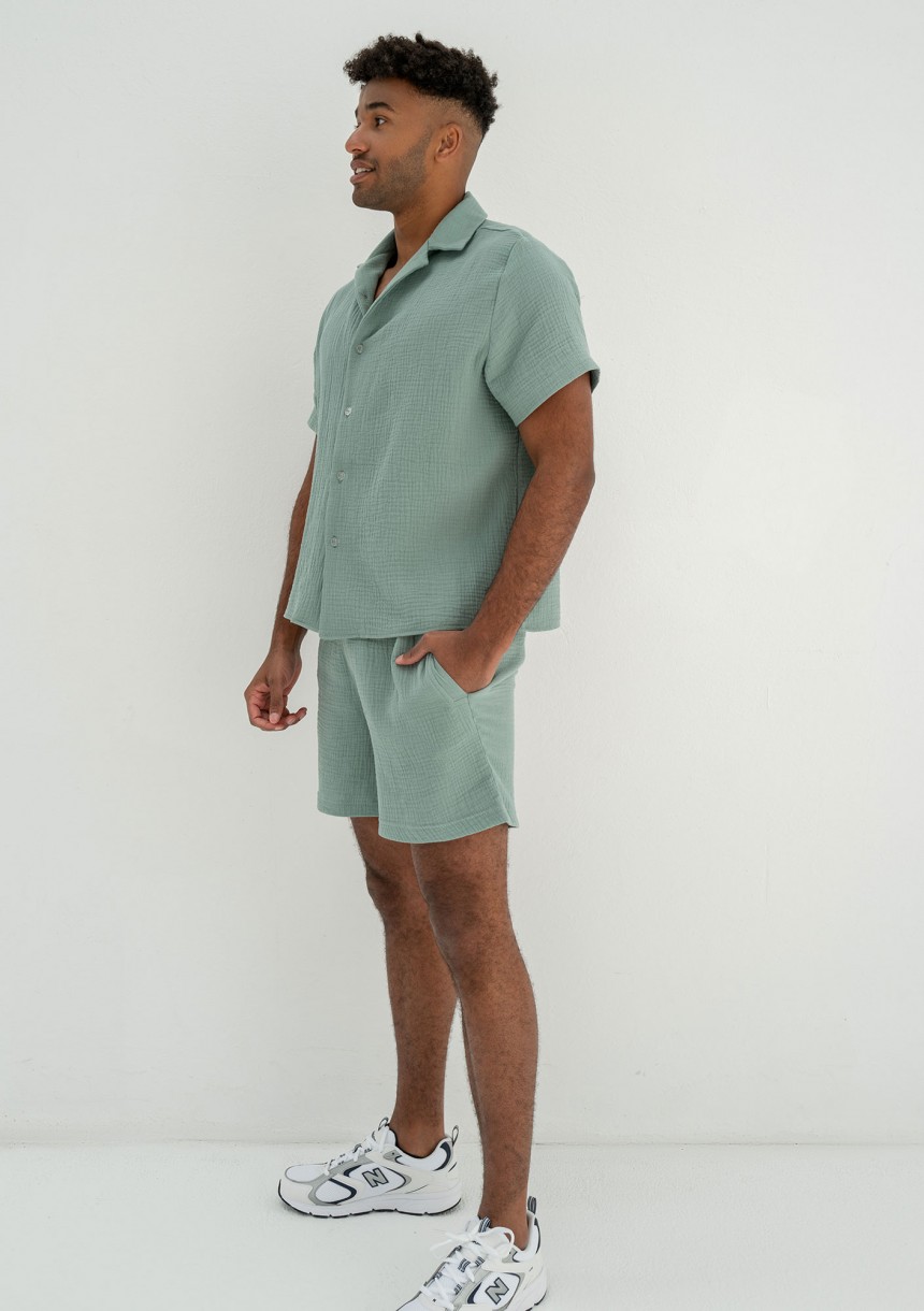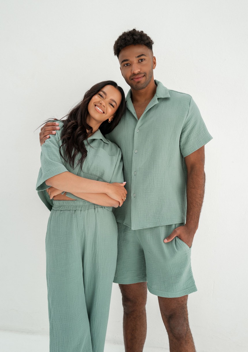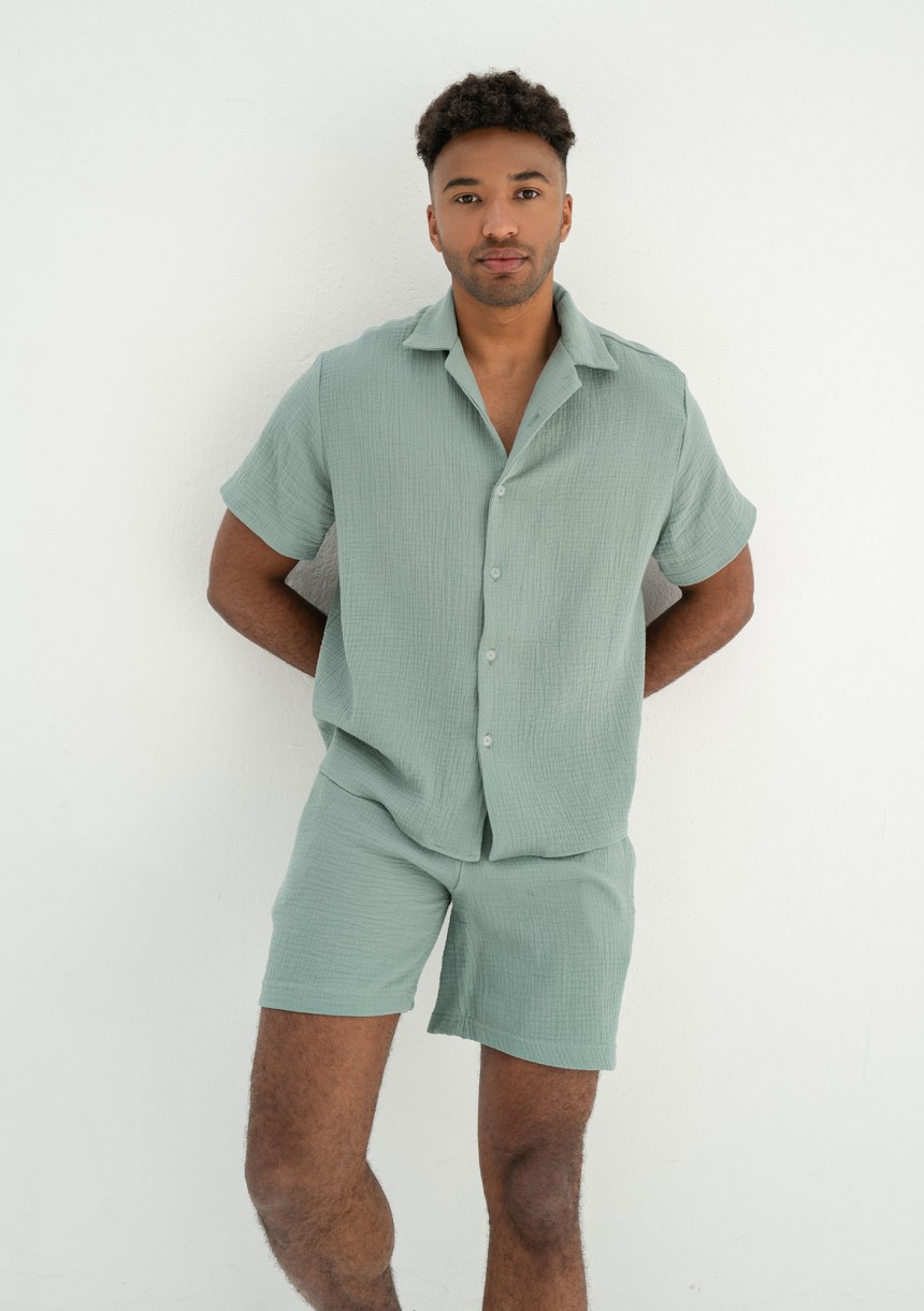 Niezrównany komfort i ponadczasowa elegancja to pewne argumenty dla zakupów muślinowych ubrań Mosquito. Tym razem przygotowaliśmy wygodną, stylową i niezwykle praktyczną odzież dla Panów! Miętowa koszula męska letnia posiada idealnie skrojony fason, zapewnia swobodę ruchów i przewiewność, stając się doskonałą propozycją na upalne dni. Nasz starannie wyselekcjonowany muślin charakteryzuje się wyjątkową miękkością, która otula skórę, a jego optymalna gęstość gwarantuje trwałość i satysfakcję z użytkowania przez wiele sezonów. Do koszuli komplementarne są szorty Zaco w tym samym, miętowym odcieniu. Taki zestaw to esencja wygody podczas letnich wyjazdów, zwiedzania, spacerów po kurorcie, plaży i relaksu; absolutny must have na wakacje!