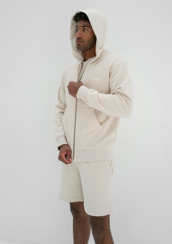 Bluza męska z kapturem o rozpinanym kroju, w kokosowym odcieniu. Z przyjemnie miękkiej i wygodnej dzianiny bawełnianej.