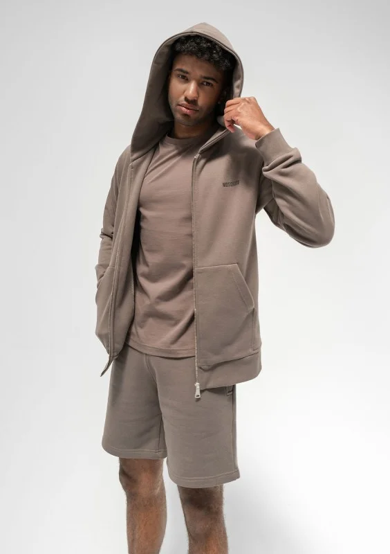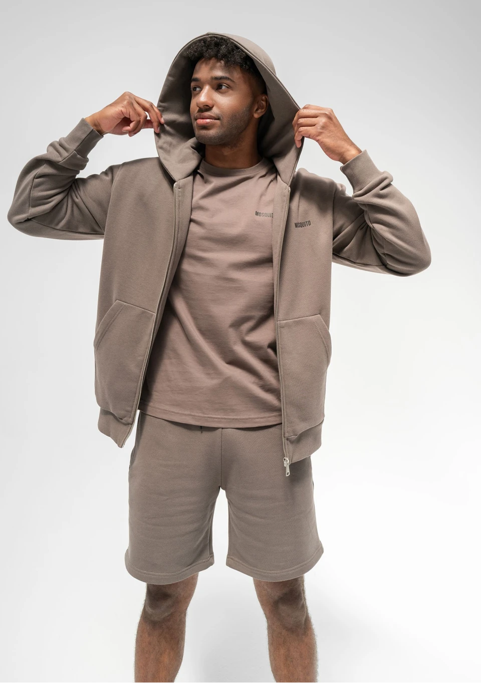 Wygodne szorty dresowe męskie o wszechstronnym zastosowaniu, do sportowych i casualowych stylizacji. Model w brązowym odcieniu Savannah Tan.