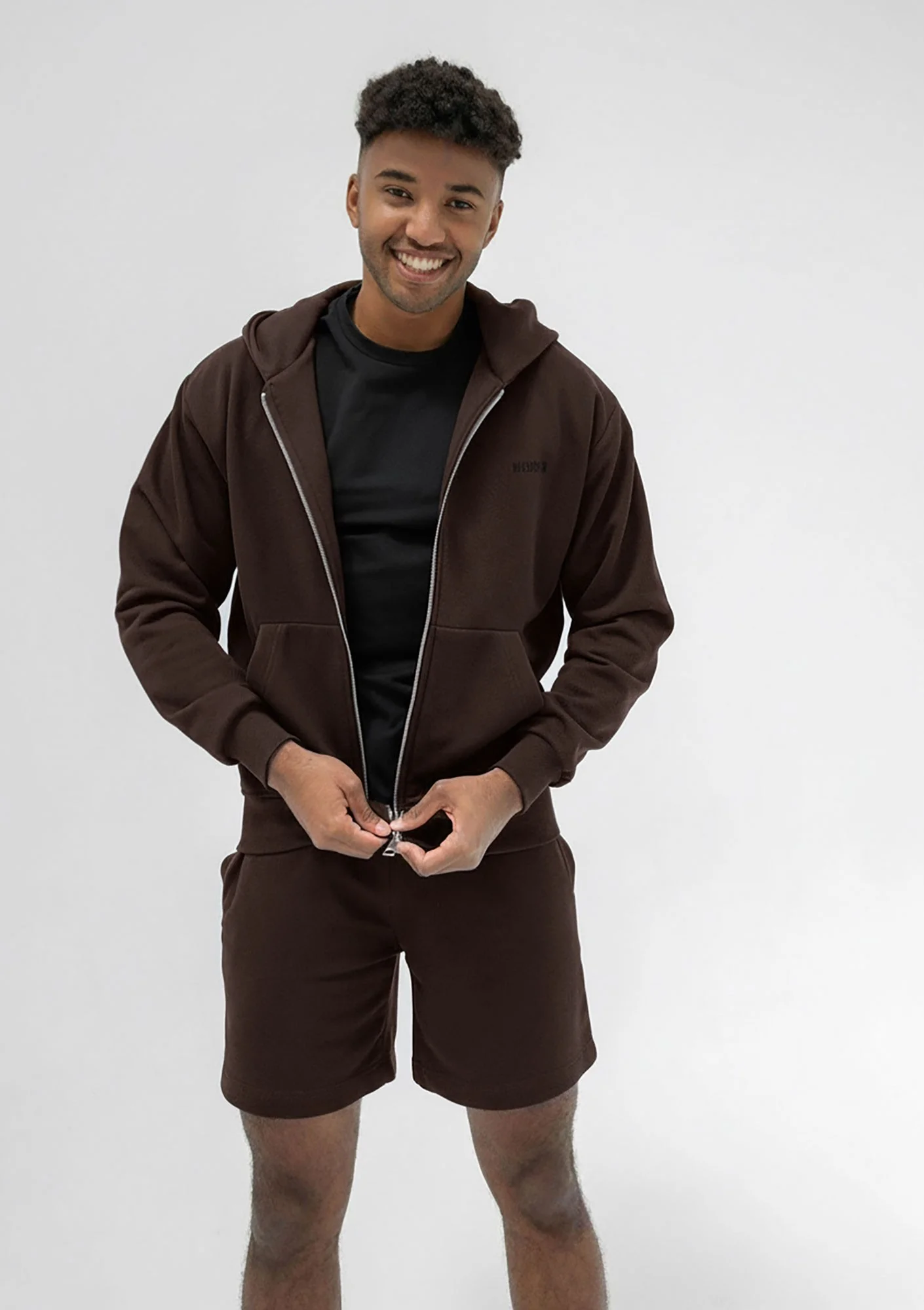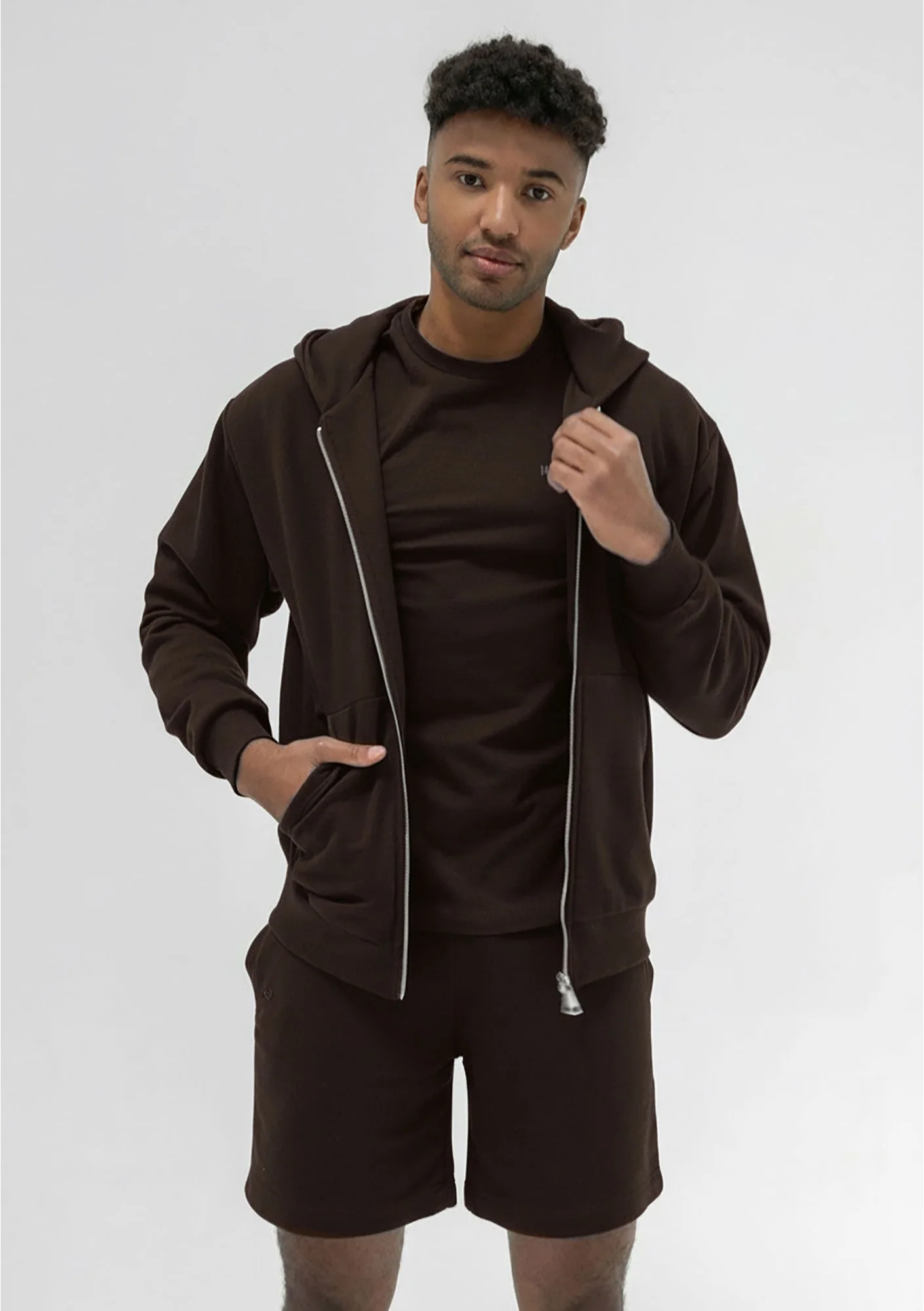 Fason luźny, rozpinany, z kapturem i kieszeniami.