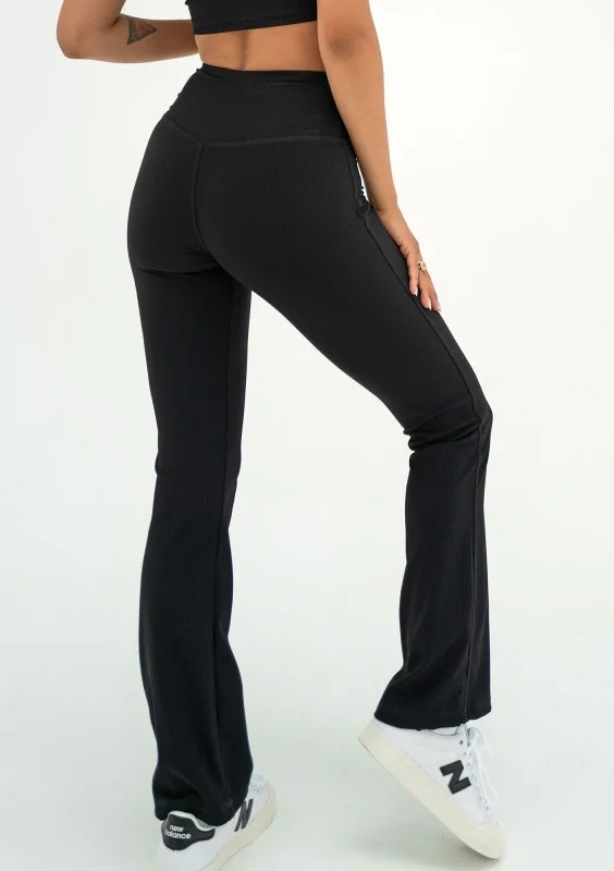 Czarne legginsy damskie z prążkowanego materiału. Elastyczne, maksymalnie wygodne. Sprawdzą się na każdym treningu fitness.