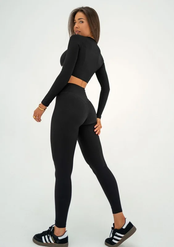 Czarne legginsy z prążkowanej tkaniny – lekkość, styl i wygoda w jednym. Idealne do treningu i na co dzień. Wykonane w polskiej szwalni.