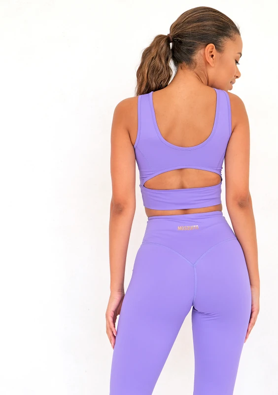 Wygodny top sportowy z wycięciem na plecach, w kolorze jasnego fioletu. To stylowy fason o zabudowanym kroju, który zapewni Ci świetny look i pełen komfort podczas treningu.