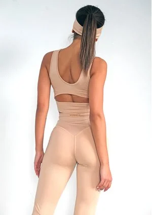 Hipnotyzuj bajecznie piękną stylizacją na zajęciach jogi i fitnessu. Powalający na kolana efekt osiągniesz zakładając beżowy, sportowy top damski z oryginalnym wycięciem na plecach. Prezentowany model to modowe cudeńko, w którym poczujesz się zgrabnie, atrakcyjnie, a przede wszystkim wygodnie. Stylowo ubrana, pójdziesz na każdy trening pełna wigoru i zapału do podejmowania nowych, sportowych wyzwań. Ten śliczny, damski top do ćwiczeń w naturalnym odcieniu beżu w połączeniu z legginsami z wyższym stanem lub obcisłymi spodenkami w typie bikerów stworzy zestaw perfekcyjny. Kolorystyka beżu doskonale odnajdzie się połączona z bielą, czernią oraz pokrewnymi tonacjami z palety cielistych odcieni nude. Genialny krój topu zagwarantuje Ci w pełni wygodne wykonywanie ćwiczeń. Elastyczny materiał odprowadza ciepło i nie zatrzymuje wilgoci oraz estetycznie kryje bieliznę.