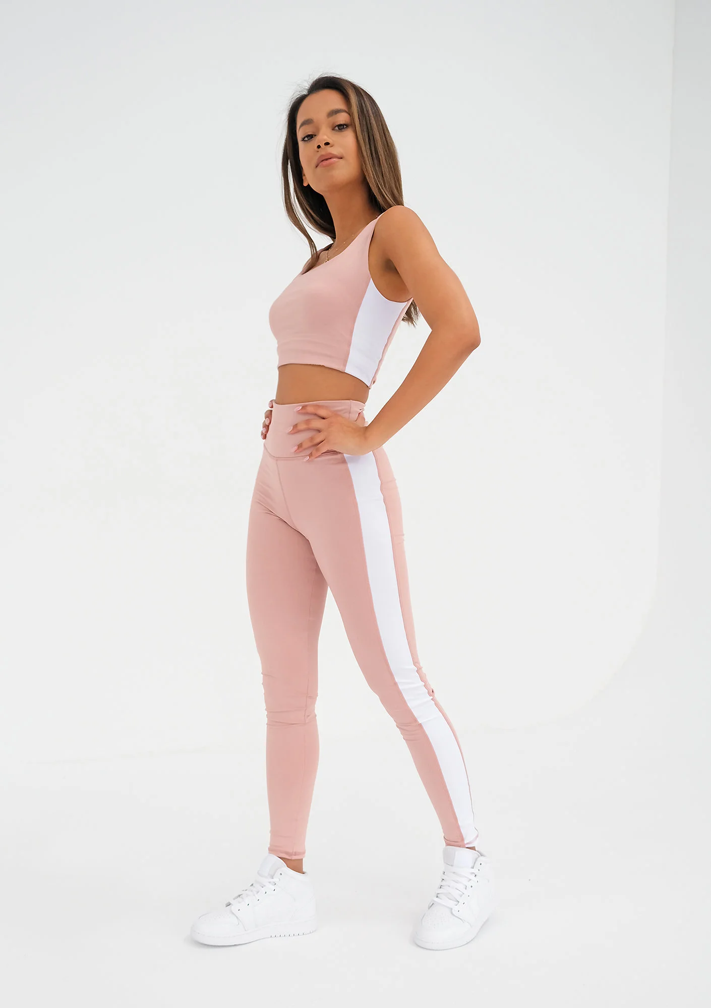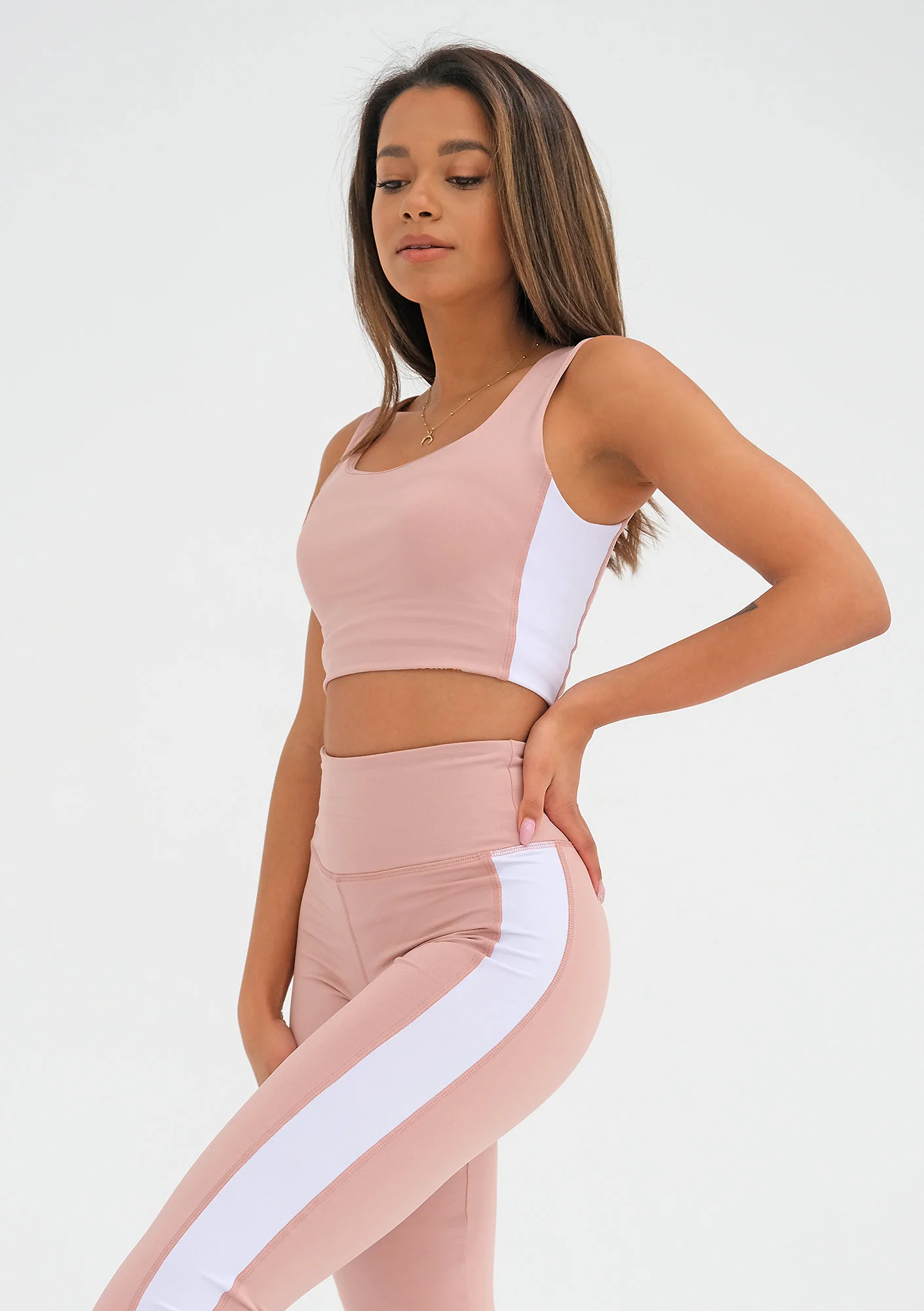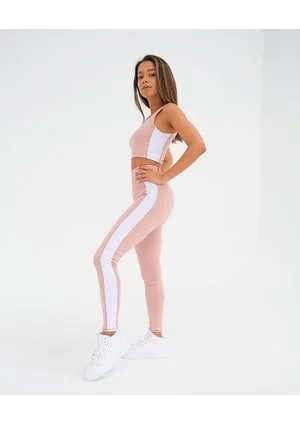 Jasny, pastelowy róż to stale modny kolor – co sezon zachwyca tak samo i nikomu się nie nudzi. Ten bardzo kobiecy odcień często zdobi sukienki na wesele, jak i damskie topy na co dzień. Warto przemycić tę zmysłową tonację do ubrań na trening. Znasz to wspaniałe uczucie, gdy śliczny komplet sportowy motywuje Cię do ćwiczeń? Treningowy, damski top różowy z lampasem sprawi, iż zechcesz trzymać się swoich wytyczonych celów. Urozmaicony białymi bokami, krótki top jest wygodnym elementem, którego fason pasuje do legginsów i joggerów z wyższym stanem. Z przodu znajduje się złote, mieniące się logo Mosquito – doda Ci blasku w dobrym stylu! Polecamy Ci do kompletu legginsy z takim samym lampasem, które również znajdziesz w ofercie.