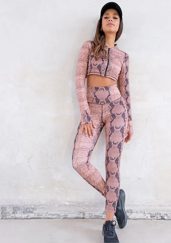 Stylowa bluza treningowa o krótkim fasonie, ozdobiona motywem wężowej skóry i czarnym logotypem. Stworzy niebanalny look i zapewni Ci pełen komfort dzięki rozpinanej formie. Wykonana z szybkoschnącej, elastycznej tkaniny.