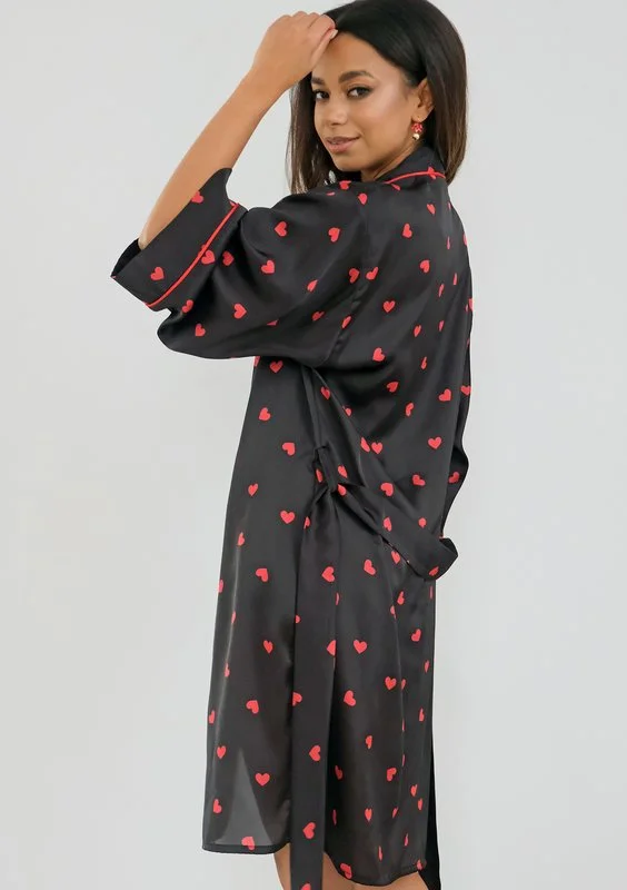 Nap - Szlafrok z satyny w serca Czarny