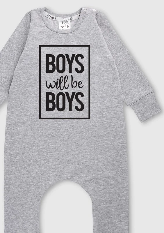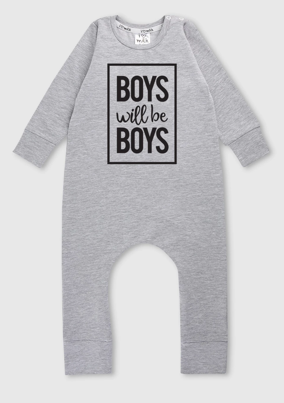 Rampers dziecięcy z długim rękawem "boys will..." Szary Melanż