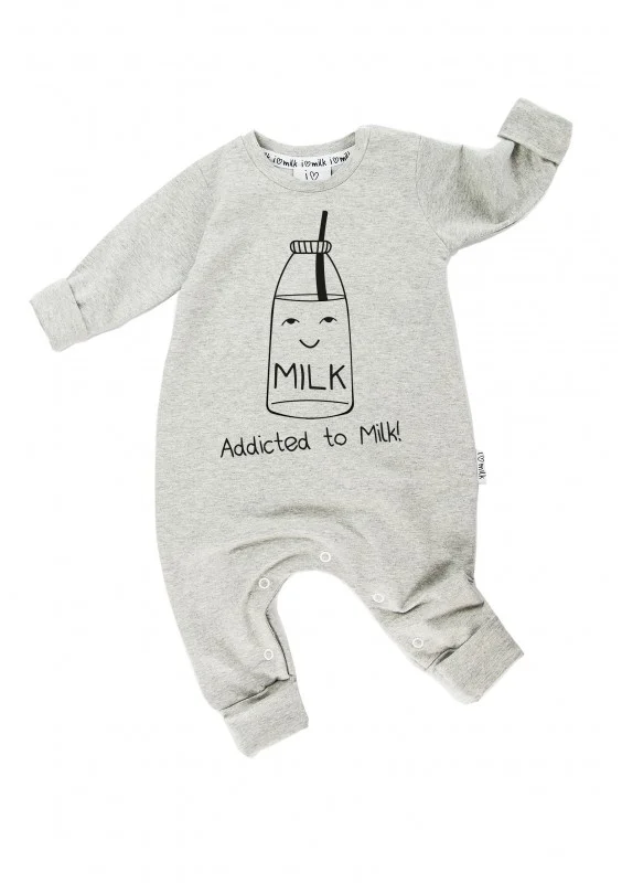 Rampers dziecięcy z długim rękawem "addicted to milk" Szary Melanż