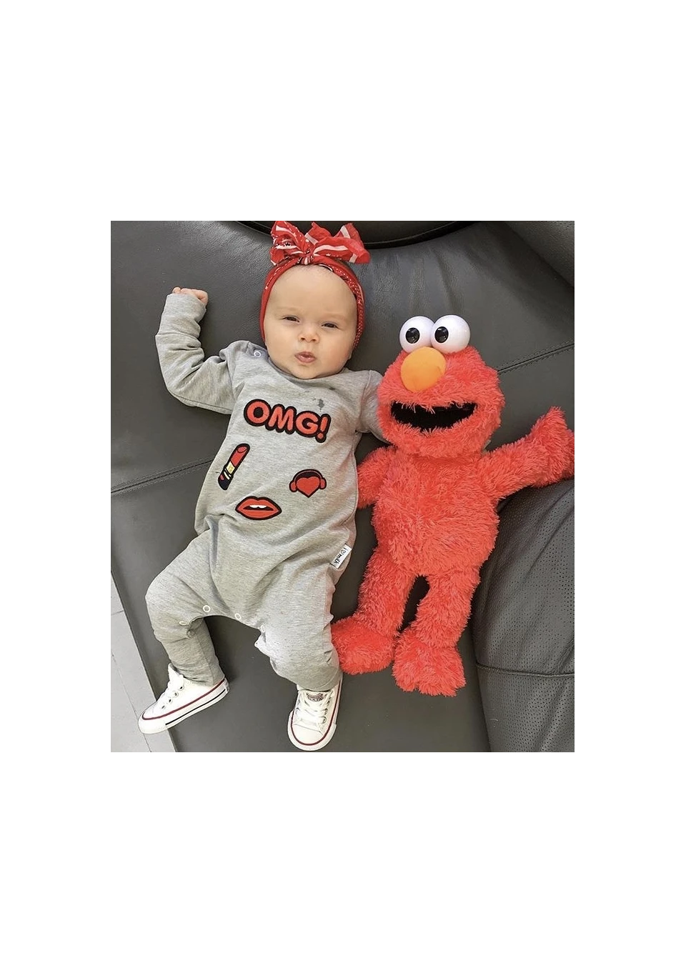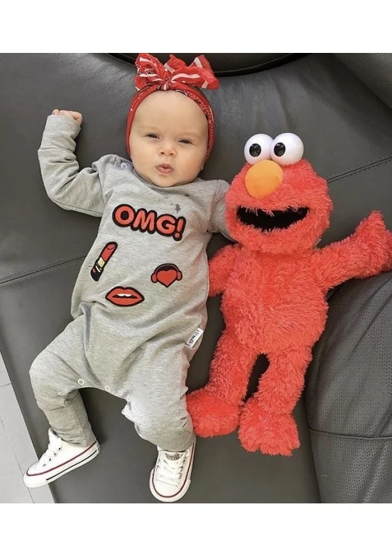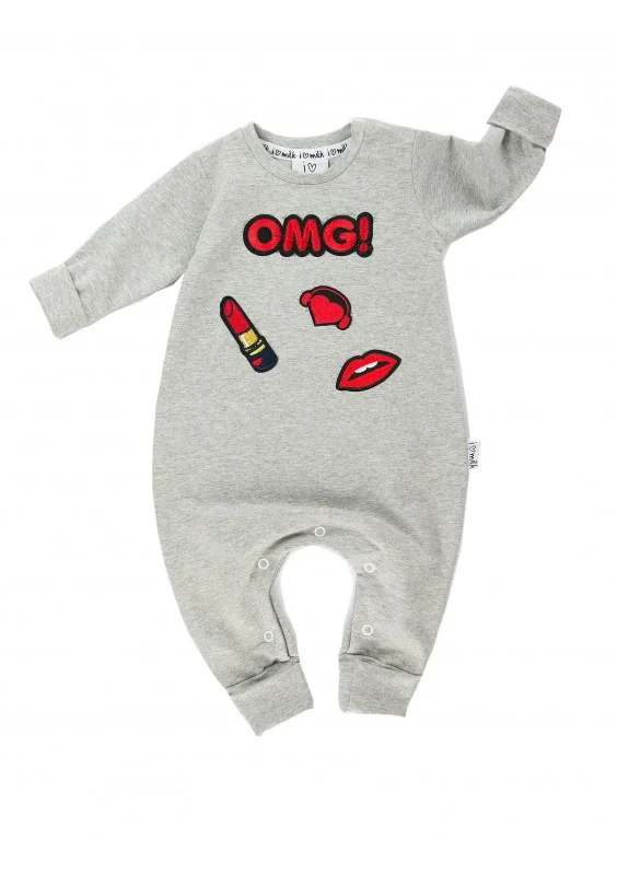 Rampers dziecięcy z długim rękawem z naszywkami OMG Szary Melanż