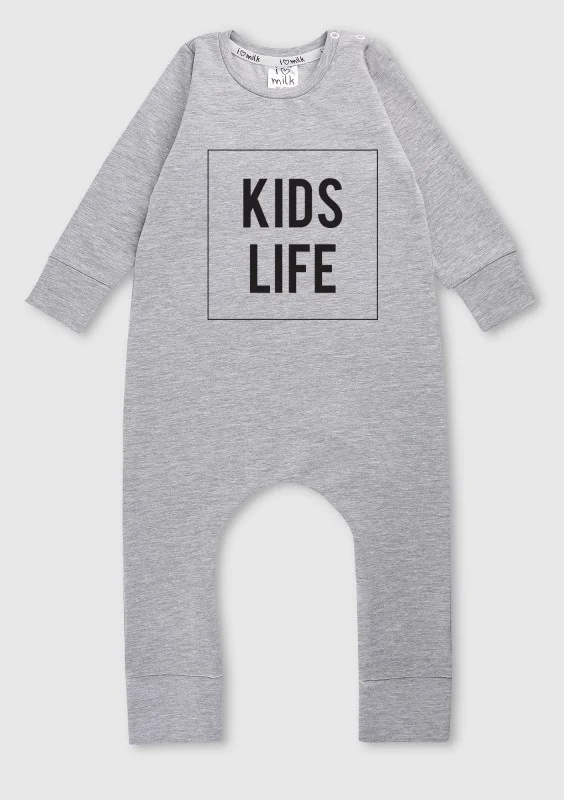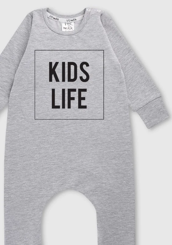 Rampers dziecięcy z długim rękawem "kids life" Szary Melanż